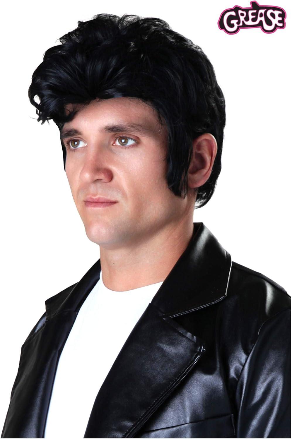 Fun Costumes Grease Movie Hair Danny Zuko Wig with Sideburns – 50s Greaser Black Wig for Men – Adult Movie Character Wigs(Modern)