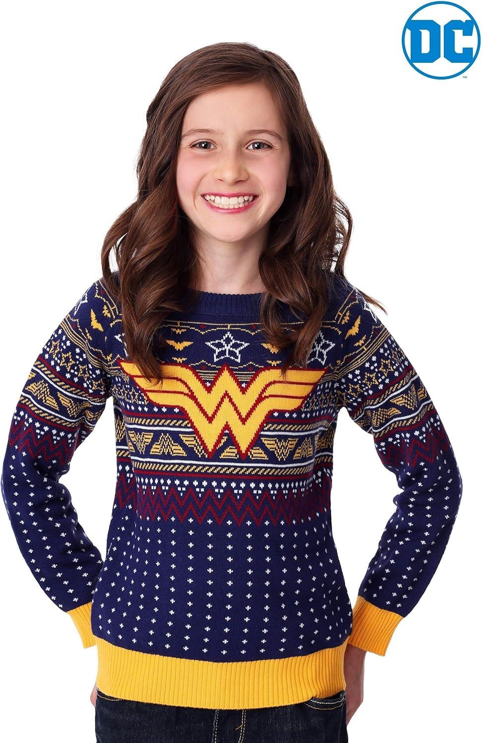 Fun Costumes Kids Wonder Woman Navy Ugly Christmas Sweater, Acrylic, Officially Licensed(Blue)