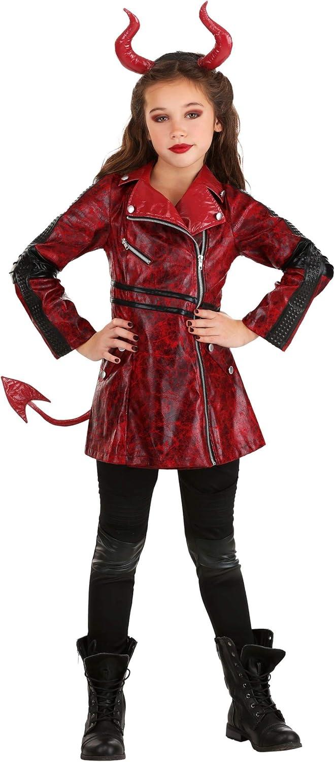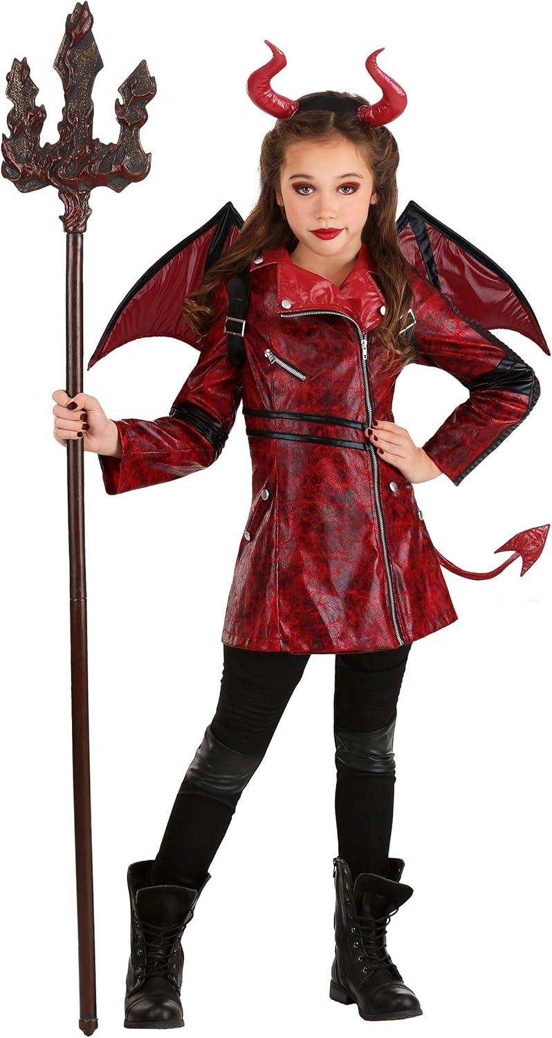 Fun Costumes Leather Devil Costume for Girls, Kids Devil Jacket Outfit with Leggings, Devil Wings, and Soft Sculpted Devil Horns