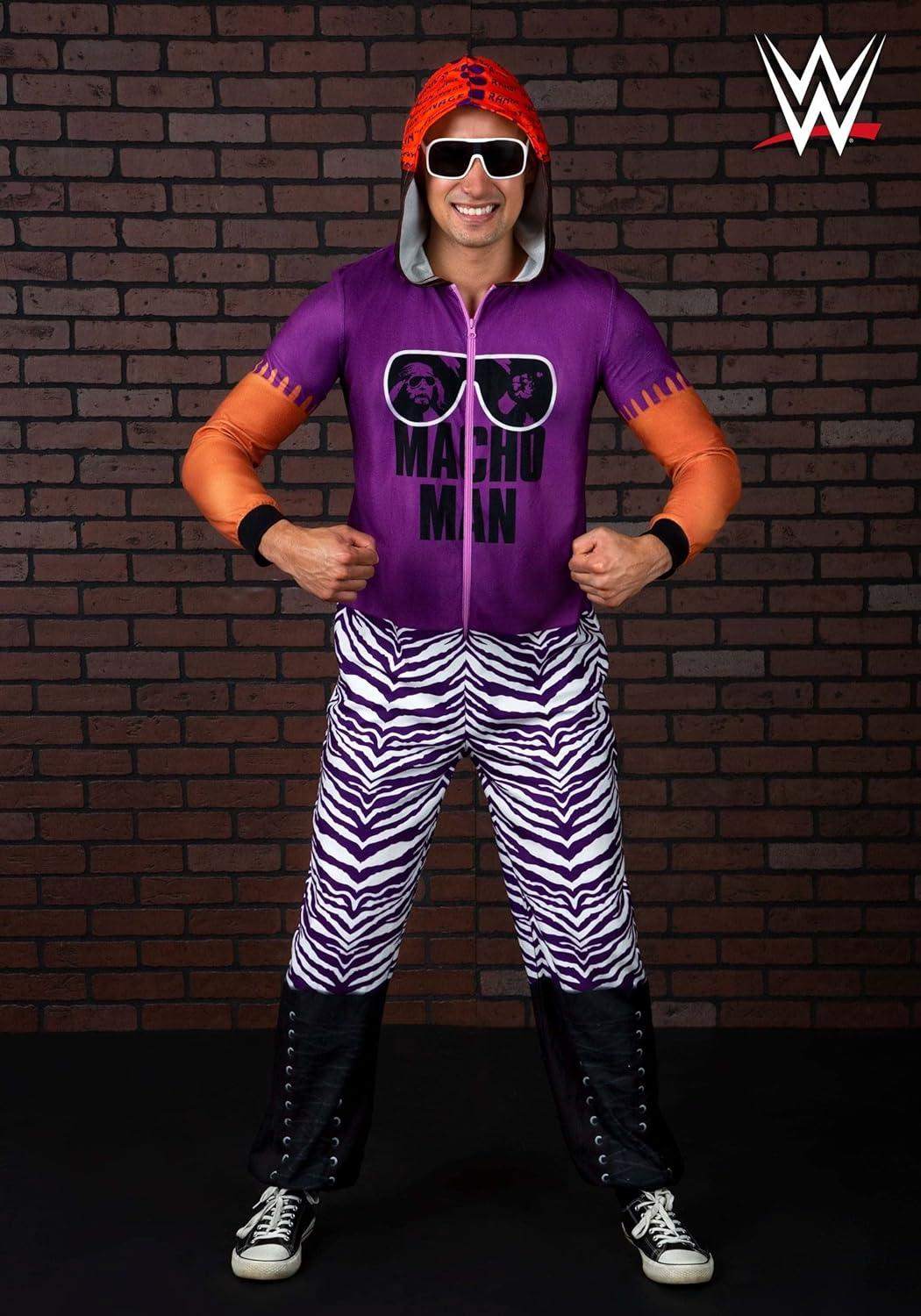 Fun Costumes Macho Man Union Suit jumpsuit for Adults – Hooded Jumpsuit with All-Over Printed Graphics