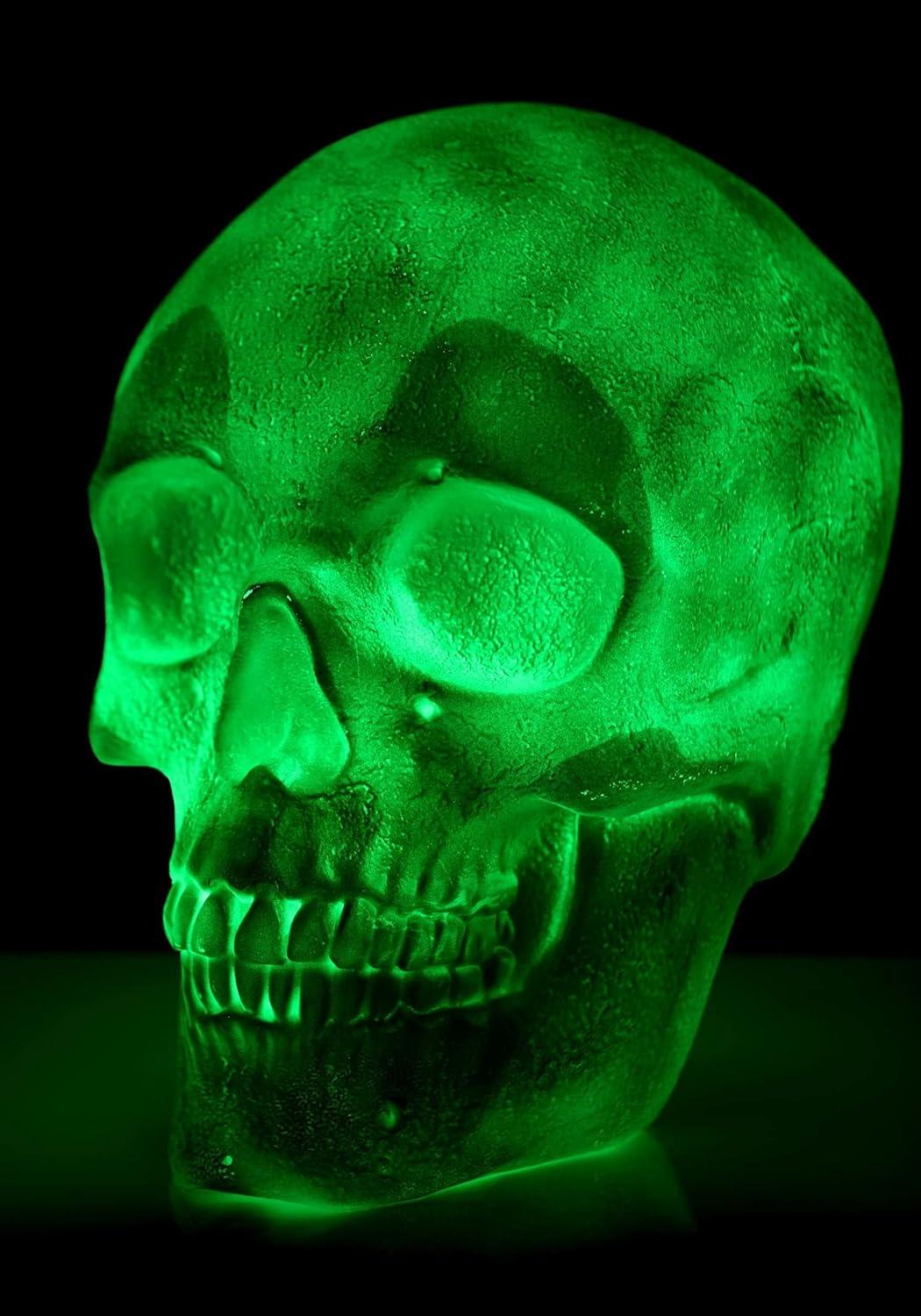 Mesmerizing Colors: Watch in awe as the 18″ tall skull continuously cycles through a captivating array of colors, including pink, teal, blue, green, red, white, orange, yellow, and more.