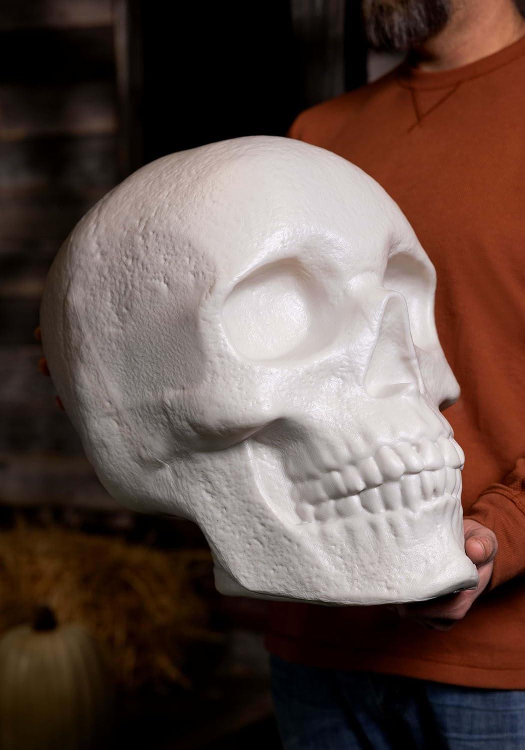 Versatile Placement: Suitable for indoor and outdoor use, this molded plastic skull decoration adds an eerie ambiance to your space. Place it on a smooth, level surface for the best effect.