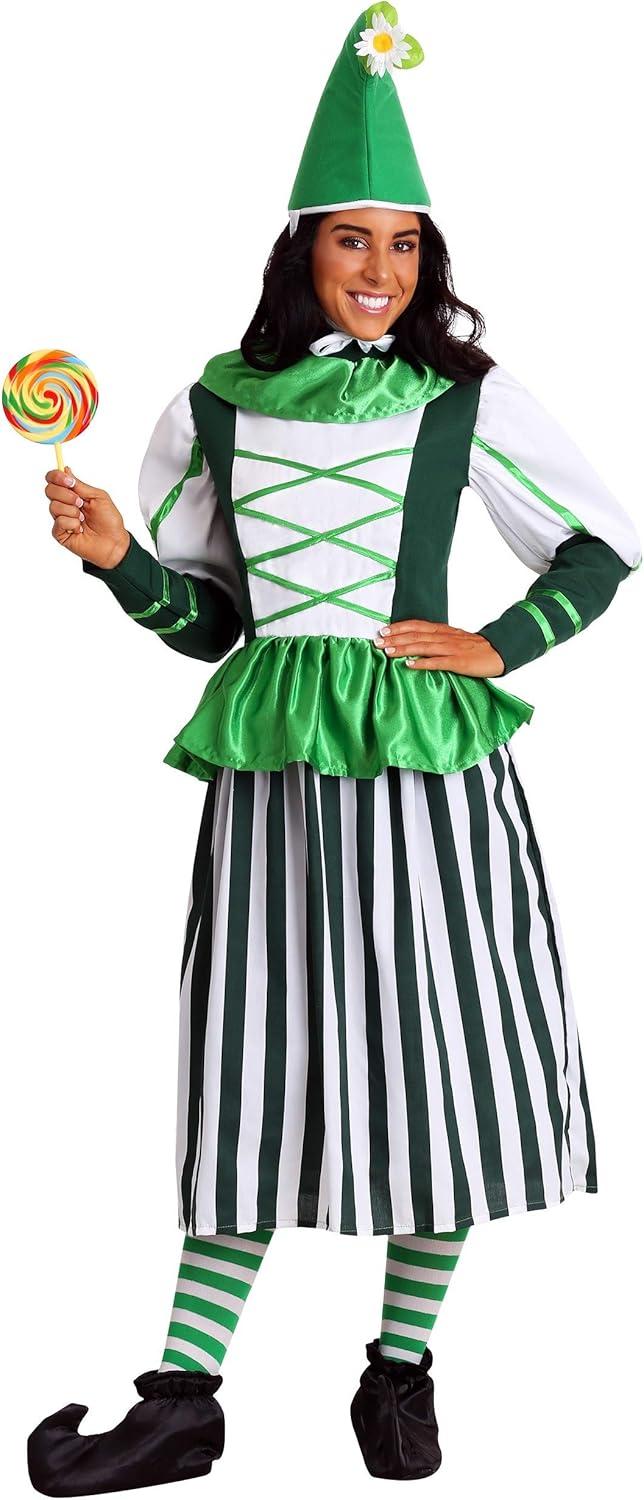 You'll be pretty in emerald while you are on your way to Emerald City! Now you can hang out with the Lollipop Guild when you wear this Plus Size Deluxe Munchkin Woman Costume! This is a great addition to a Wizard of Oz group costume. Pick up some pointy shoes to complete the look!