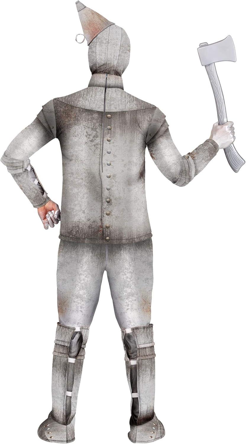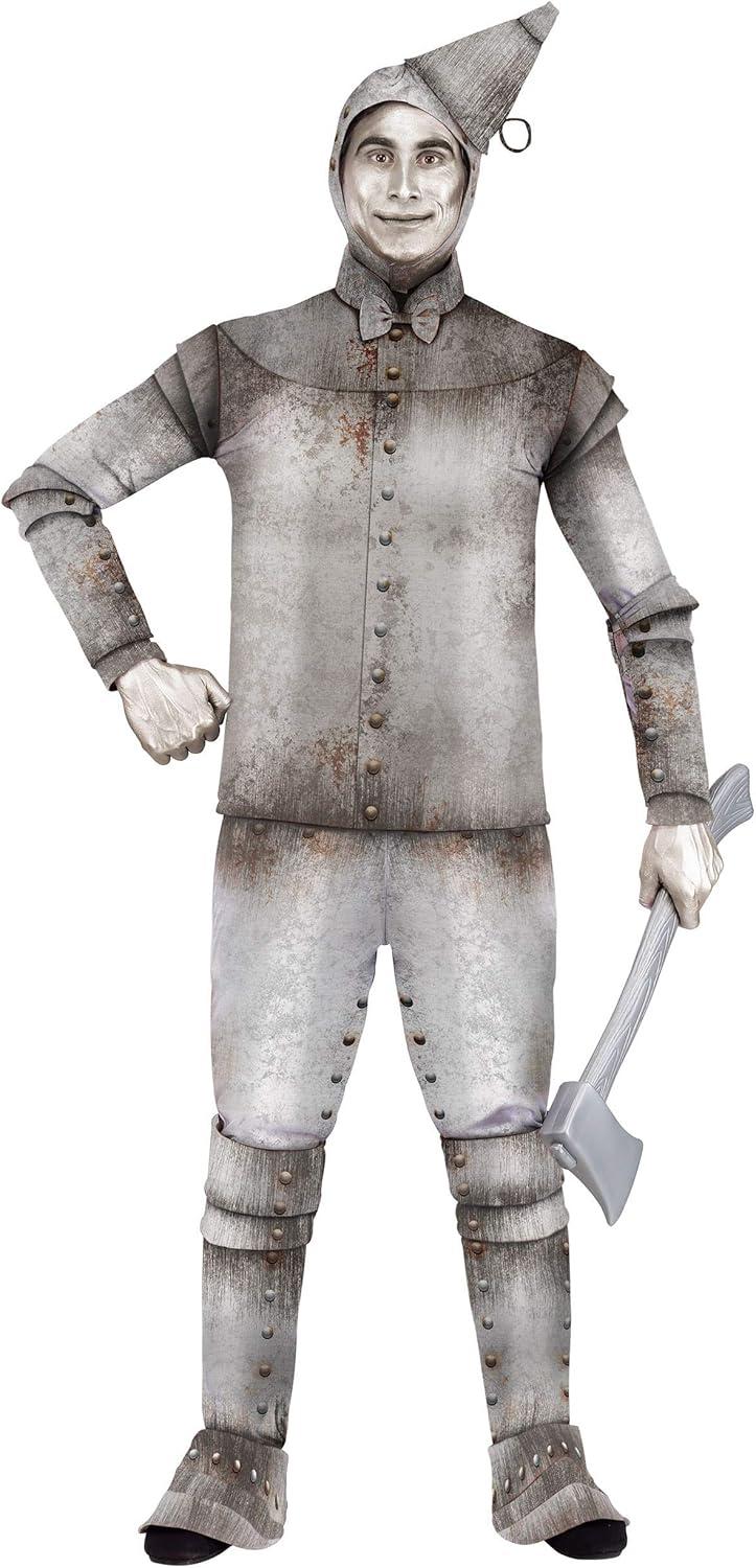 The Fun Costumes Men's Tin Fellow Costume Plus Size If you'd like to experience the awesomeness of your favorite characters for Halloween or cosplay, you're going to need costumes with great designs. And when you want to be a Tin Fellow of the woods, you'll find this Adult Tin Fellow Costume to be the perfect fit. With authentic styling and durability meant to last through all of your cosplay adventures, you'll love your cosplay with this signature outfit! Product Design: Working in the woods will have never looked so good when you get this Tin Fellow costume. This outfit has the classic design you're looking for complete with foam and poly fabric costume pieces that are fully printed with a metallic tin finish along with rivets and rust stains. Slip on the matching gloves and boot covers and top everything off with the hood with a cone-shaped funnel. You'll be off on an adventure before you know it! Product Details: 100% polyester Shirt has back zipper, Mandarin collar Body of shirt is foam-backed, sleeves are not Pants have elastic waistband All-over print of rivets and rust stains Fabric hood has hook & loop fastener under chin Hood has foam funnel hat attached at top, left-of-center Foam wrist cuffs slide on, have elastic bands for snug fit Foam boot covers have elastic bands under foot & along back seam Size Chart: 2X: Top Chest=52″; Sleeve Length=27″; Top Length=29 1/2″; Pants Waist=43″ – 48″; Pants Length=43 1/2″ 3X: Top Chest=56″; Sleeve Length=27 1/4″; Top Length=29 3/4″; Pants Waist=48″ – 52 1/2″; Pants Length=44″ About Us: Fun Costumes are exclusively made by us and begin with passion, teamwork, and industry expertise decades in the making. Our products are proof that with the right people even a simple idea can grow into something incredible. We started in a small garage in Minnesota, providing costumes to our local community, and now we're creating costumes for people all around the world. – Top – Pants – Pair of Wrist Cuffs – Pair of Boot Covers – Ho