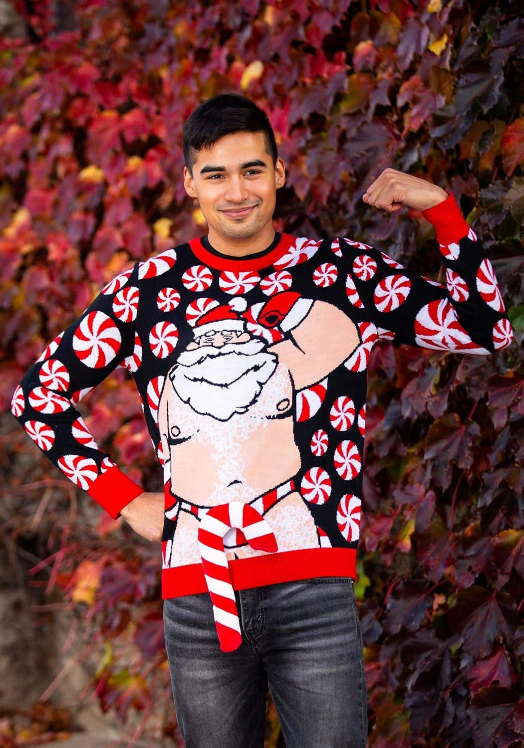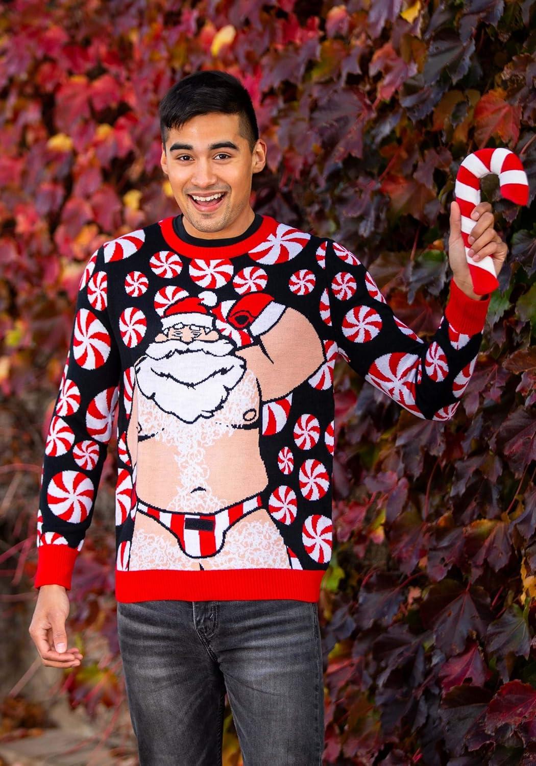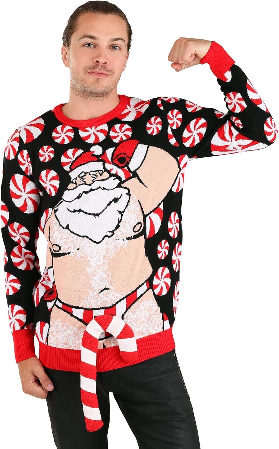 Fun Costumes Santa Claus Candy Cane Ugly Christmas Sweater Acrylic, Rib-Knit Cuffs, Stuffed Candy Cane(Red)
