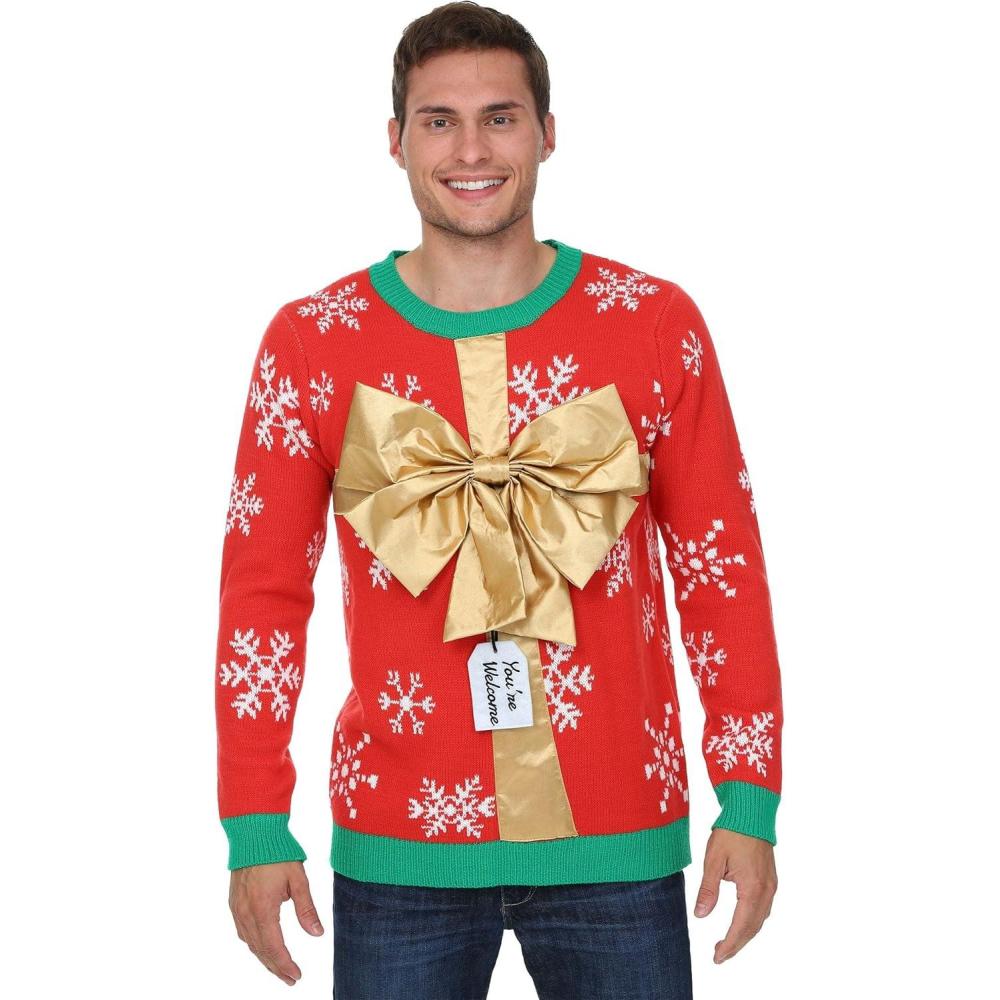 Fun Costumes Ugly Christmas Sweater for Adults, Gift Ugly Holiday Sweaters, Xmas Pullover Sweatshirt(Red)