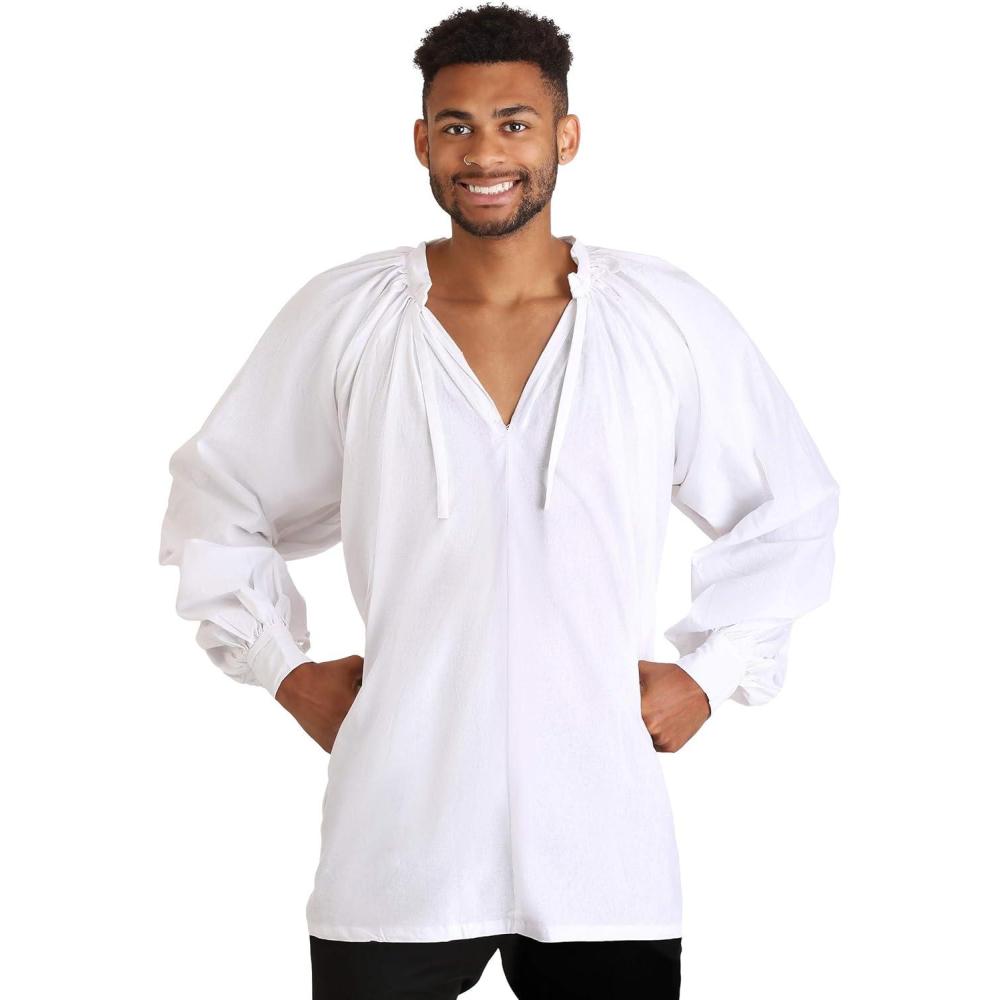 This White Renaissance Peasant Shirt is perfect for Halloween or a Renaissance fair! Wear it with our men's Renaissance trousers or breeches and a vest for the complete look of a prosperous merchant. To be a peasant, wear it over tights. – Shirt