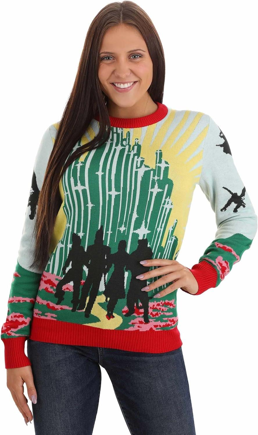 Fun Costumes Wizard of Oz Ugly Sweater for Adults(Kelly Green red yellow)