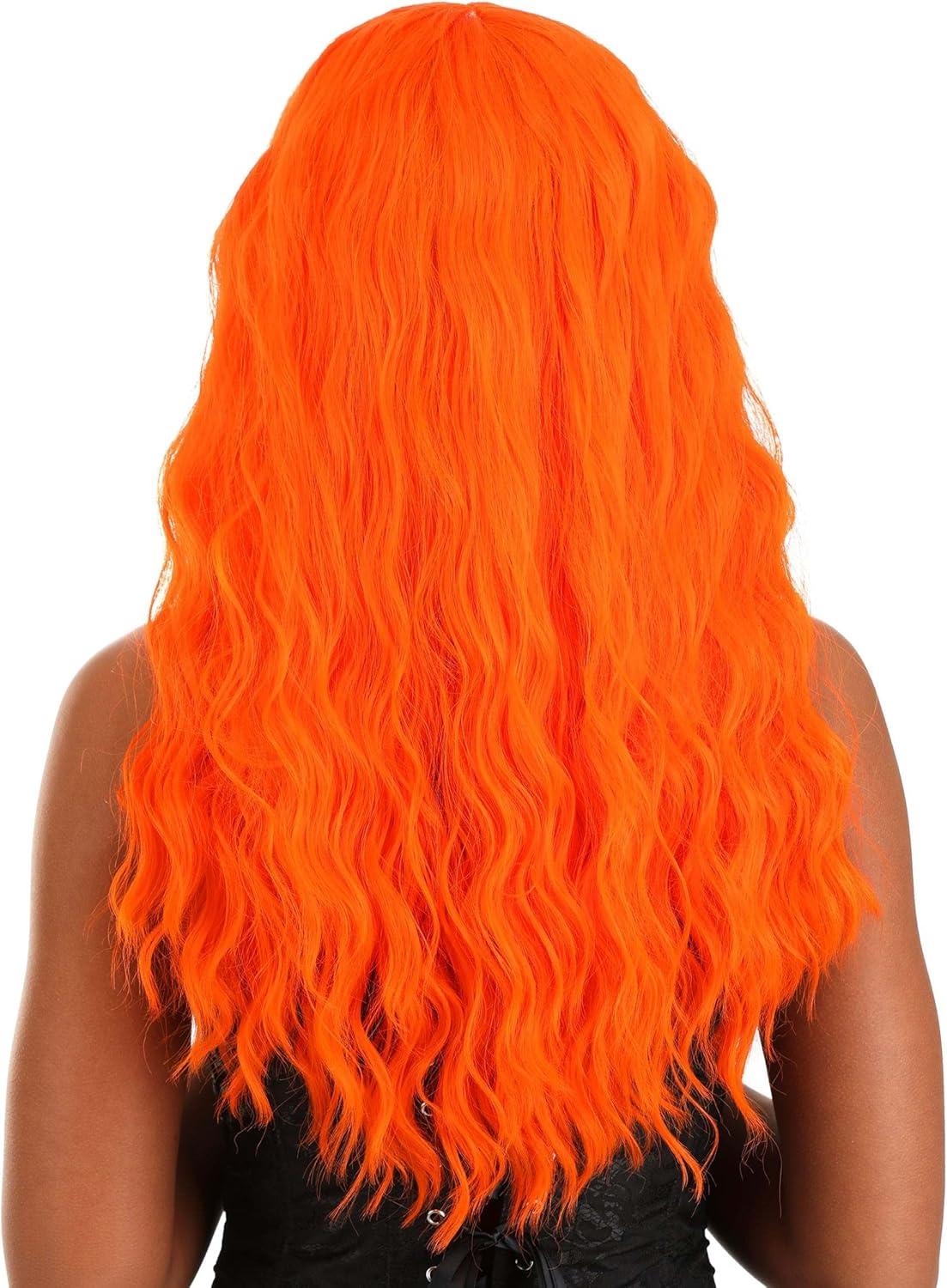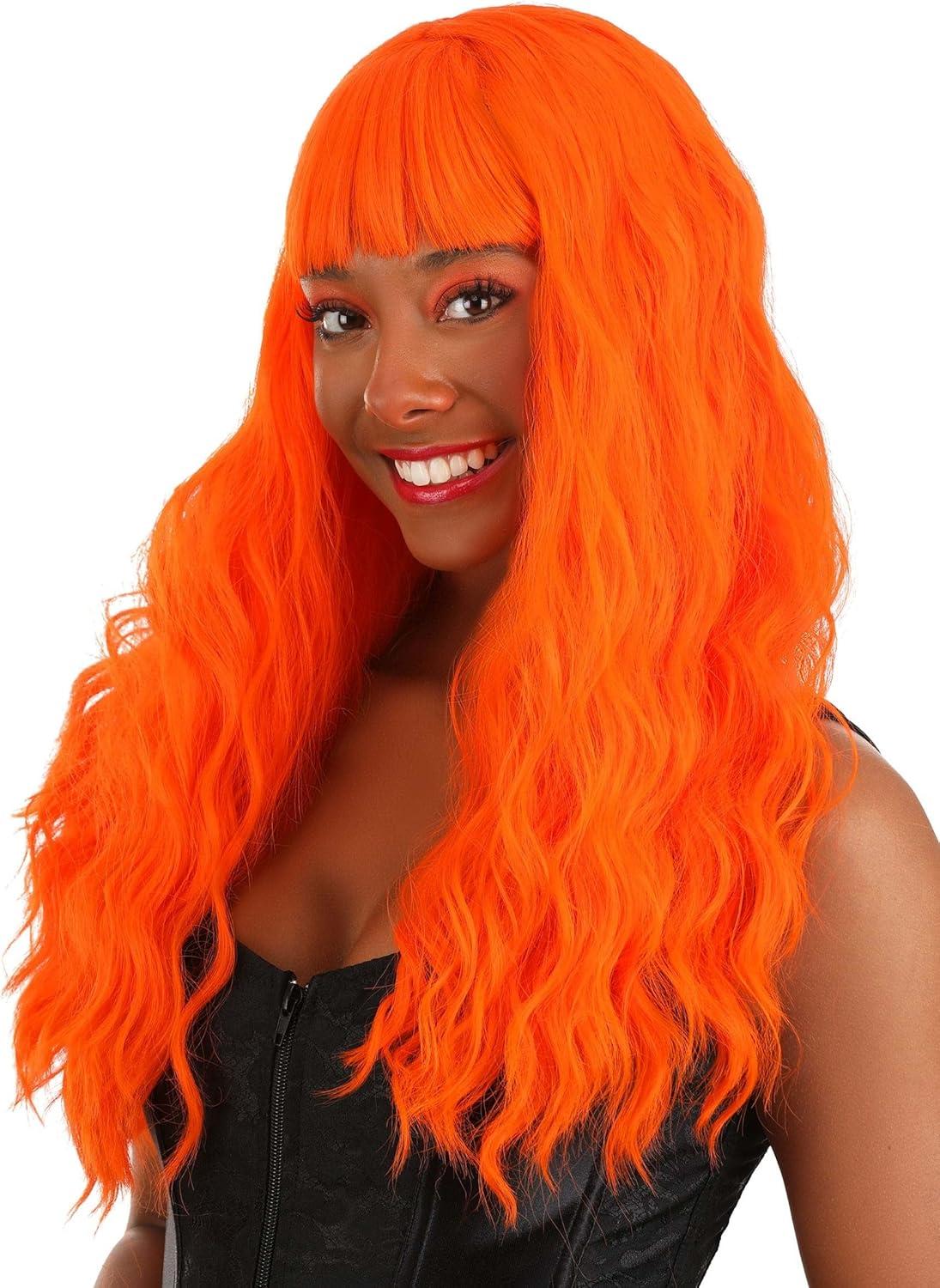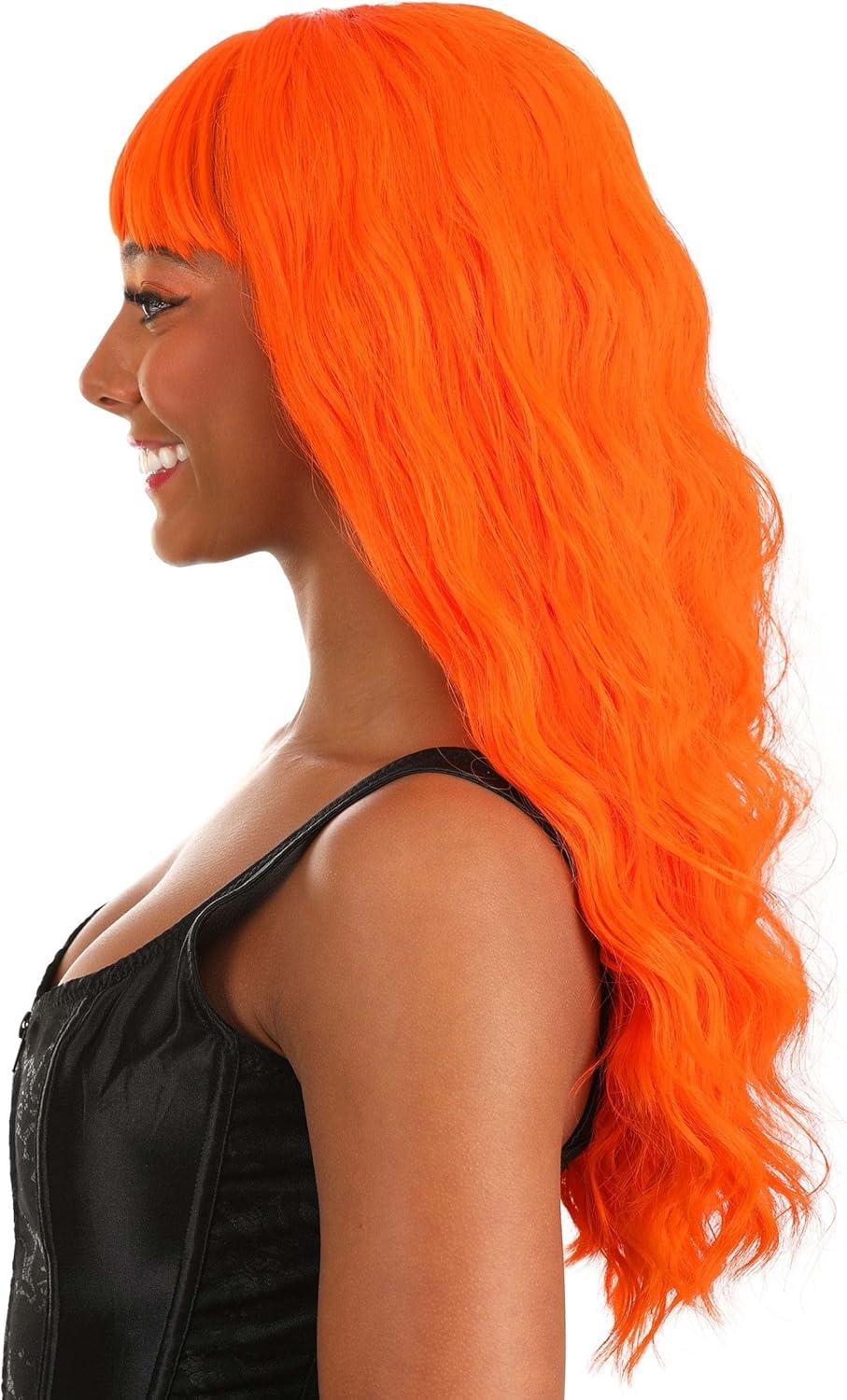 Fun Costumes Women’s Fiery Orange Long Wavy Wig – Straight Bangs Shoulder Length Synthetic Cosplay Wig for Women ST(Standard)