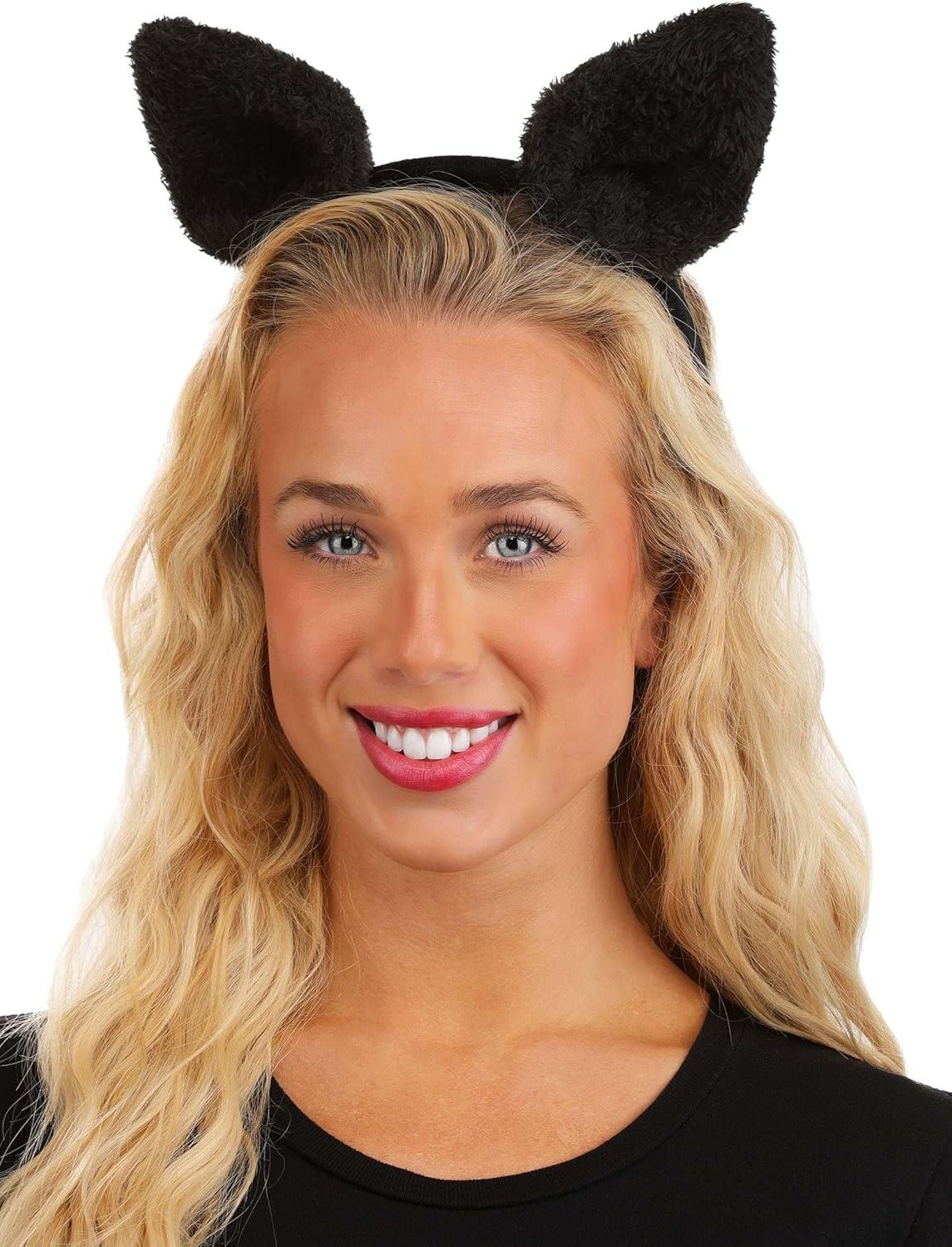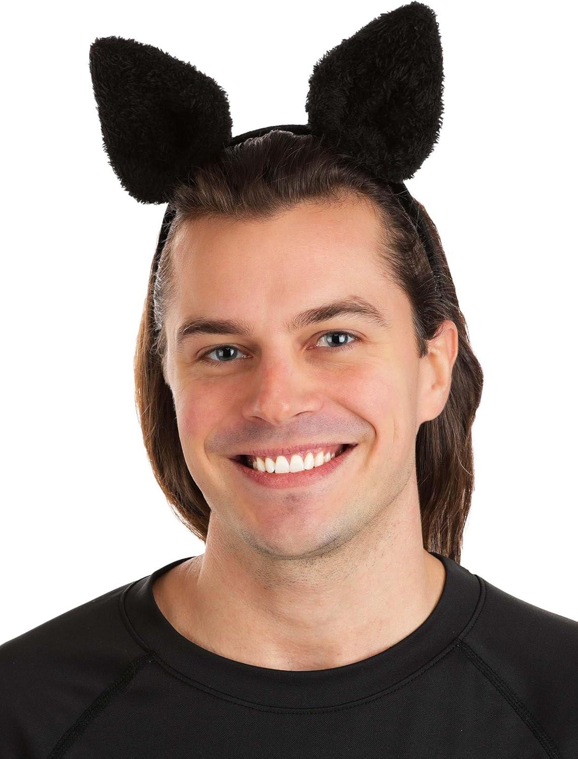 Fuzzy Ear Bat Costume Headband Plush Black Bat Ears Soft Lightweight Halloween Accessory Adult Party Dress Up Standard