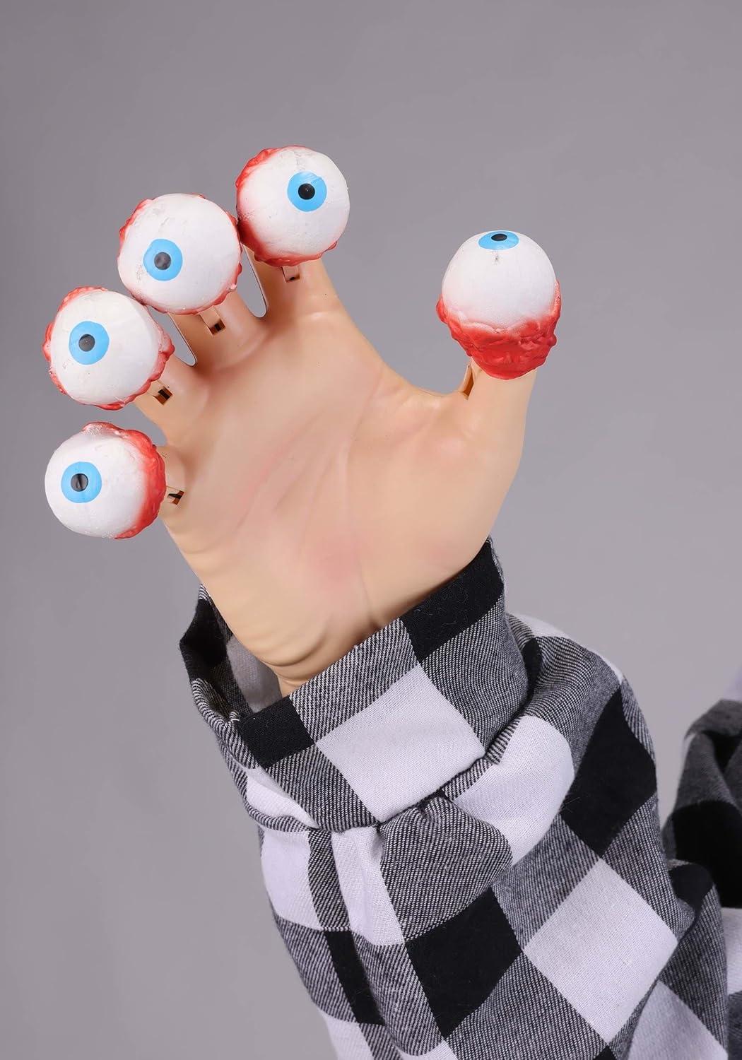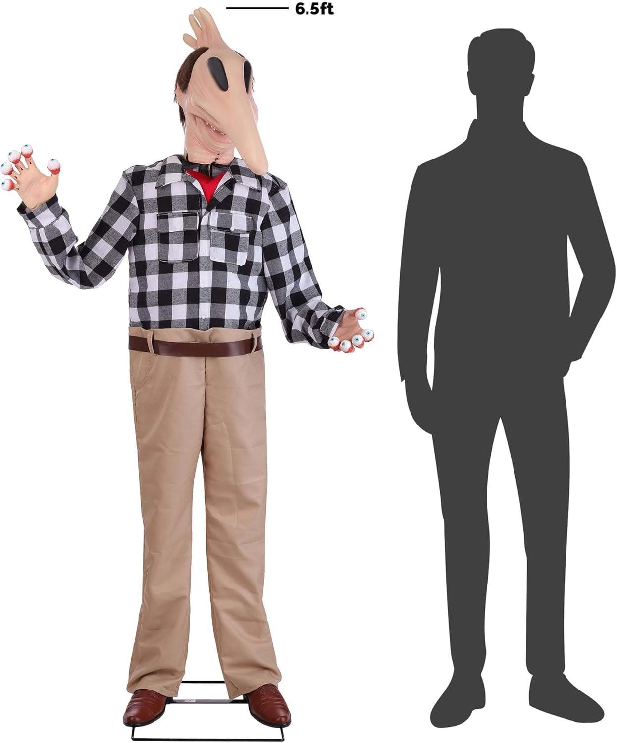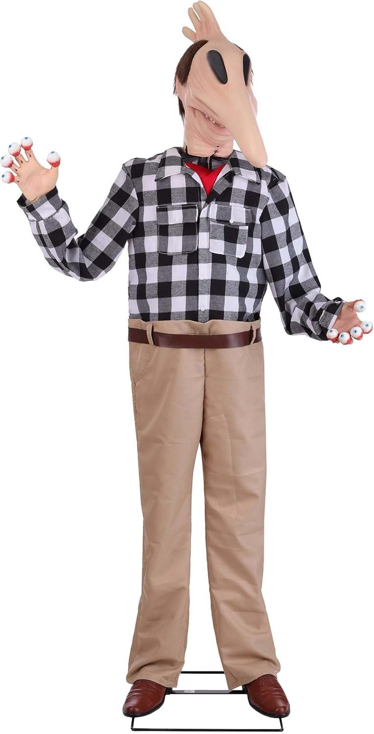 Bring one of Tim Burton's most bizarre and unforgettable creations to life this Halloween with the 6.3FT Beetlejuice Adam Animatronic Decoration. Inspired by the fan-favorite transformation scene from the Beetlejuice movie, this officially licensed decoration captures Adam in his terrifying look with eyeball fingers and exaggerated features, making it a must-have centerpiece for horror lovers and collectors. Standing at an impressive 6 feet 4 inches tall, this animatronic combines sound, motion, and design for a truly spine-chilling effect. Adam's head moves back and forth as his eerie eyeball fingers bend into place, while his voice delivers 12 memorable quotes directly from the film. Whether displayed at a Halloween party, haunted house, or front entryway, he brings the strange and spooky energy of the Beetlejuice universe straight into your home. With multiple activation options, Adam is as versatile as he is terrifying. Choose the standard on or try-me settings, let the built-in motion sensor catch your guests off guard, or connect him to a step pad (sold separately) for the ultimate jump-scare effect. He can run using the included power cord or operate on 4x AA batteries (sold separately), giving you flexibility to place him wherever he'll make the biggest impact. Built with a metal stand, molded plastic, and polyester clothing, Adam is designed for use indoors or in covered outdoor areas. If you plan to set him up outdoors, simply connect him to a GFCI outlet and keep him shielded from direct rain or snow. His life-size height and eerie design make him perfect for porches, party rooms, haunted houses, or horror-themed gatherings. This decoration includes everything needed for easy setup: the animatronic figure, a sturdy stand, power cord, and step-by-step instructions. Once assembled, Adam becomes the star of any Halloween display, creating an atmosphere that blends nostalgia, fright, and fun for Beetlejuice fans.