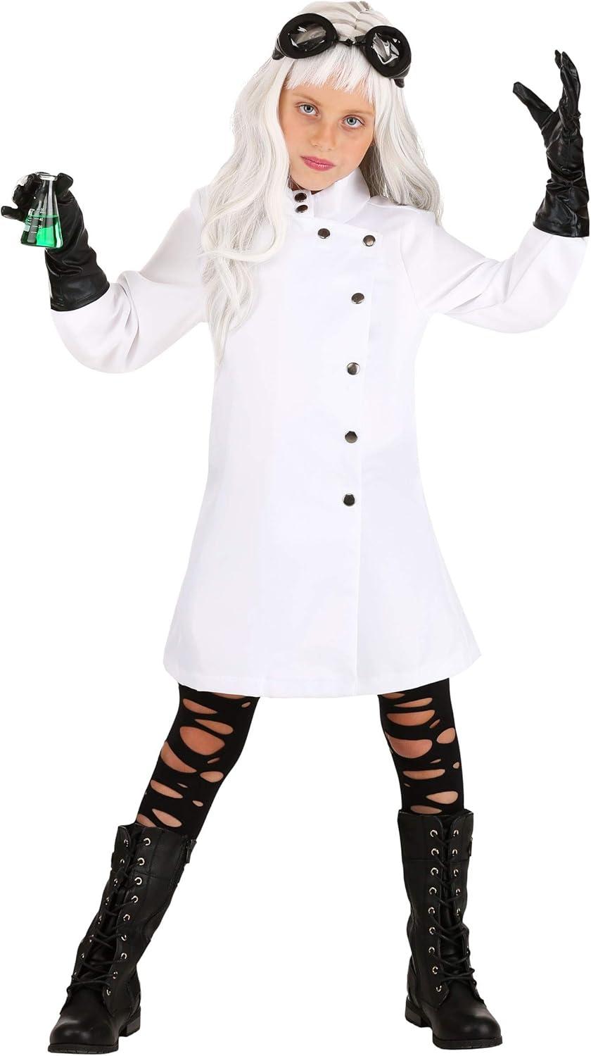 The Fun Costumes Mad Scientist Costume for Girls When your kiddo feels Halloween need to look like they've been working on diabolical plans in your secret laboratory, they’re going to need a spiffy mad scientist uniform. And this kid's mad scientist costume is ready to help your girl get weird in the lab! Featuring a jacket worn as a dress, the coat has a high collar with dark silver decorative buttons down to the waist. Shiny black gloves are layered on the wrist and the outfit is topped off with black lab goggles to make her look like an expert in the field of dark science! Product Details: 96% polyester, 4% cotton Jacket front has faux snaps with hook and loop closure at front Gloves have shiny wet-look finish Foam goggles have elastic band around back of head Size Chart: M: Chest=30″; Waist=29″; Jacket Length=24 1/2″; Sleeve Length=17 1/2″ L: Chest=32″; Waist=31″; Jacket Length=26 1/2″; Sleeve Length=20 1/2″ XL: Chest=34″; Waist=32″; Jacket Length=27 1/2″; Sleeve Length=22 1/2″ About Us: Fun Costumes are exclusively made by us and begin with passion, teamwork, and industry expertise decades in the making. Our products are proof that with the right people even a simple idea can grow into something incredible. We started in a small garage in Minnesota, providing costumes to our local community, and now we're creating costumes for people all around the world. – Jacket – Goggles – Pair of Gloves