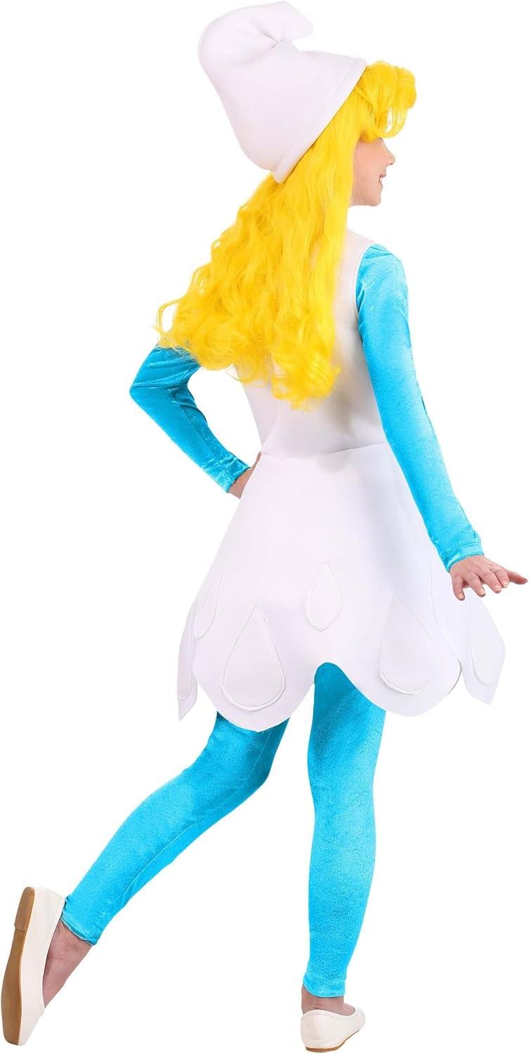 Girls The Smurfs Smurfette Costume, Classic Smurfs Dress-Up Outfit with Hat and Blonde Wig