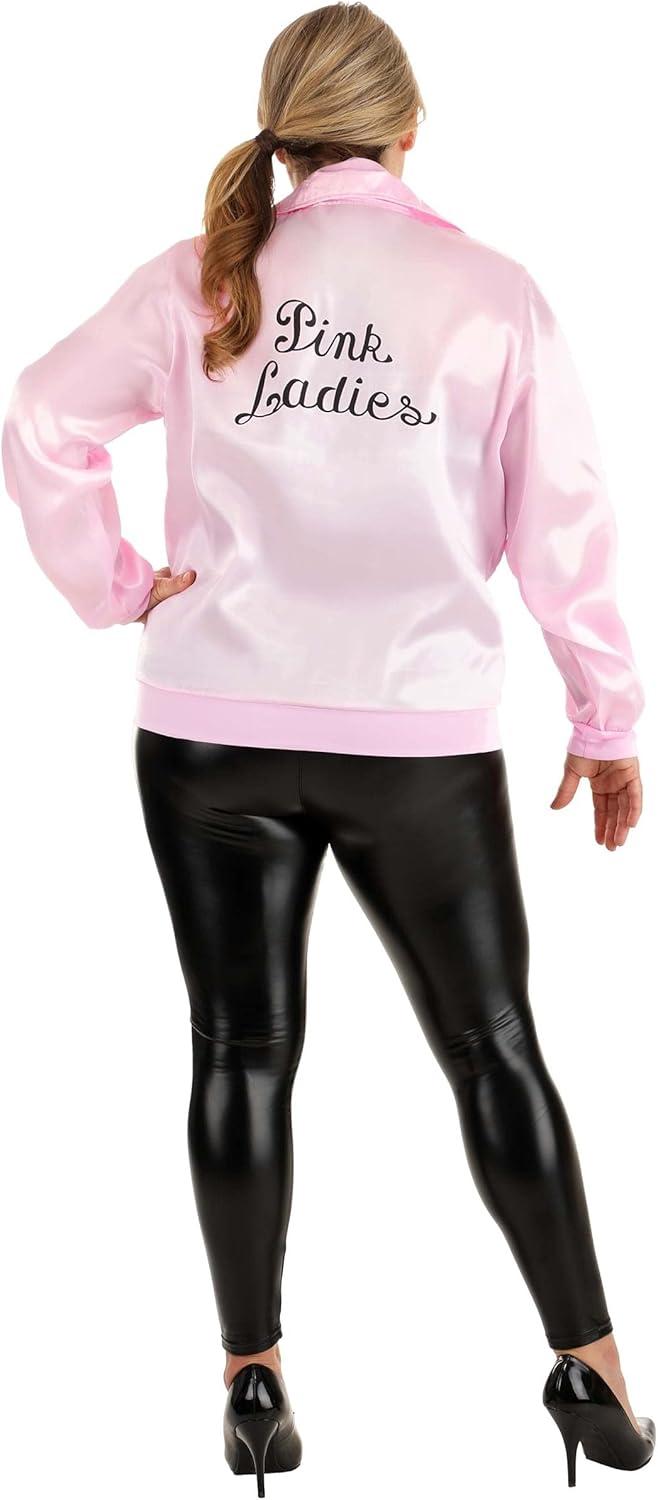 Transform yourself into a Pink Lady with our officially licensed Women's Grease Jacket, a symbol of retro charm and iconic style straight from the classic movie that has stood the test of time. Crafted from smooth and shiny polyester satin, this Pink Ladies jacket is more than just a costume, it's a statement piece that allows you to step into the world of Rydell High. The front separating zipper and two false front pockets provide both style and convenience, while the bold black script spelling out “Pink Ladies” on the back adds that authentic touch that fans adore. Paired with the sheer neck scarf that measures 21″ x 22″, you have the option to style it as desired, just like the leading ladies of the film. Whether you're looking to join the T-Birds for a night of unforgettable fun or unleash your inner Sandy, this costume is your ticket to reliving the magic of Grease. Complete your look with our range of accessories, from faux cigarettes to black shiny leggings and 50's black frame glasses. Fun Costumes' passion for bringing movie moments to life shines through in this Pink Ladies Jacket, meticulously designed and exclusively made by us. From a small garage in Minnesota to creating costumes for people worldwide, our journey is proof that even a simple idea can grow into something incredible. Let your nostalgic spirit soar as you rock 'n' roll in true Pink Lady style! – Jacket – Scarf