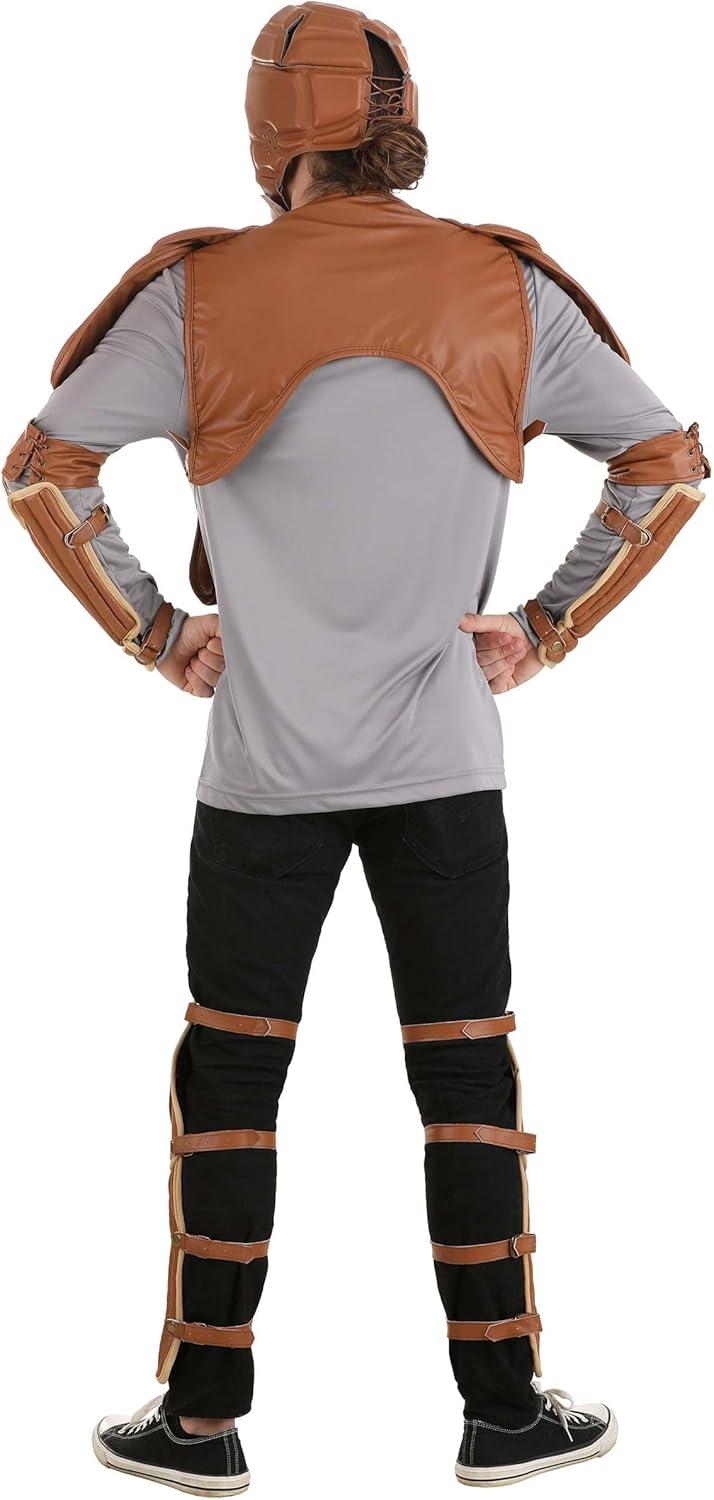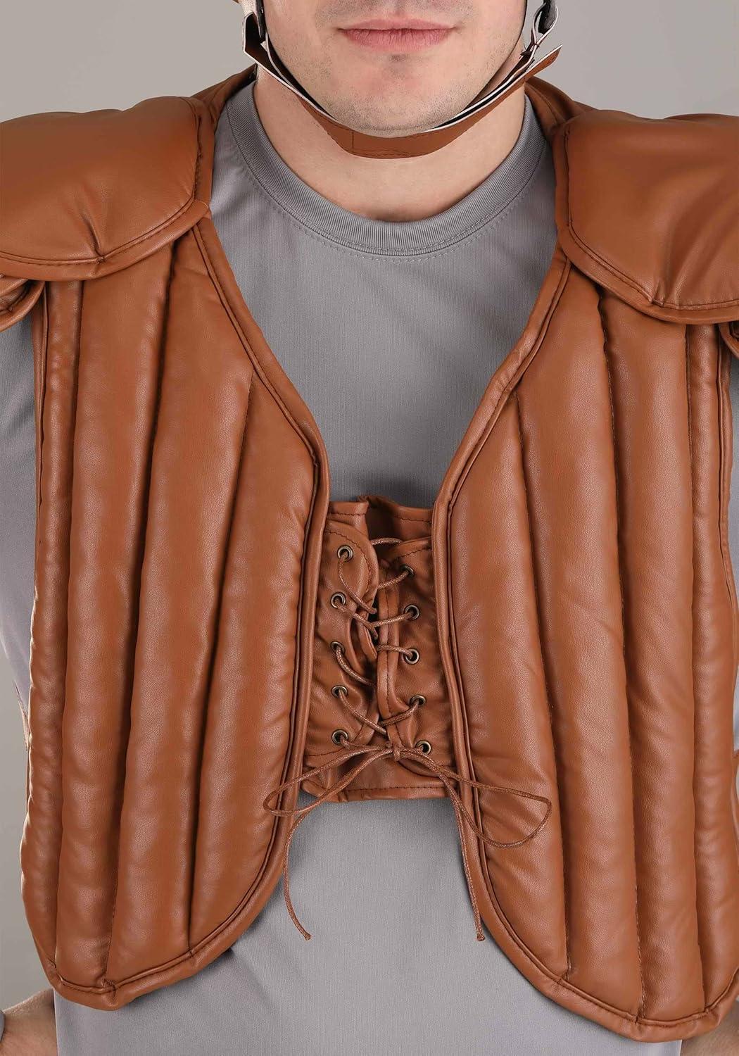 Get ready to play the most popular sport in the wizarding world when you put on our Quidditch Costume Kit for Adults! All the pieces in this set are made from faux leather and foam, designed to look like the real thing. The shoulder and chest pads slip over your head and are adjustable with side straps and front laces, while the helmet laces in the back and has hook and loop fastener on the chin strap. The gauntlets and shin guards have length-adjustable buckles to accommodate most adults.