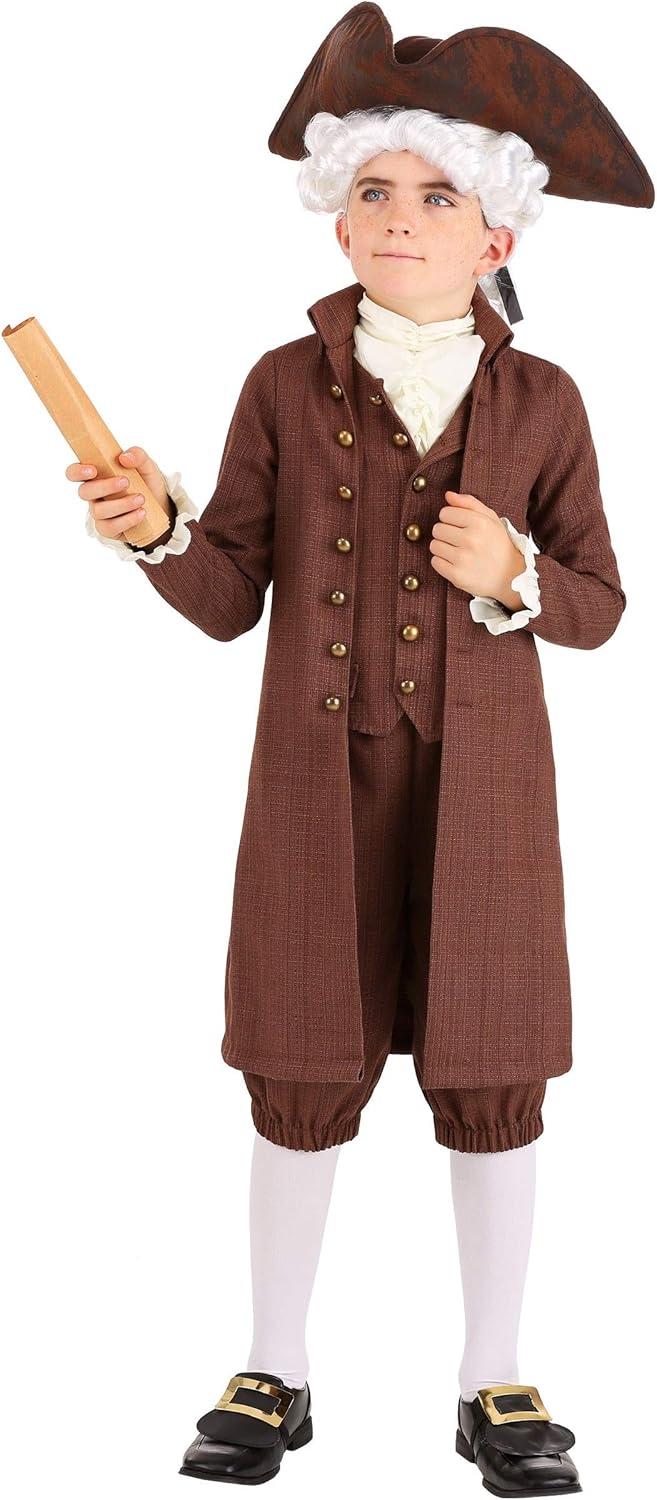 Historical Child John Adams Costume, Halloween & Dress Up Outfit With Jacket, Cravat, Pants, And Hat