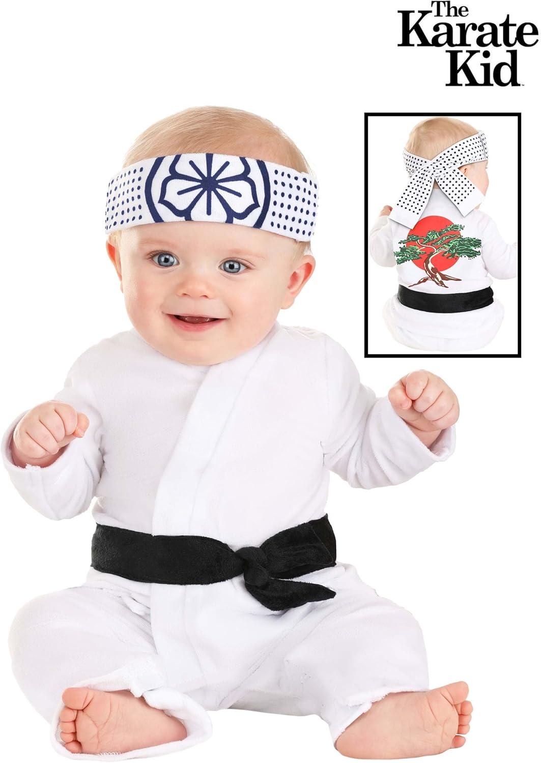 Infant Karate Kid Daniel-San Costume Jumpsuit, Belt, Headband Karate Baby Outfit