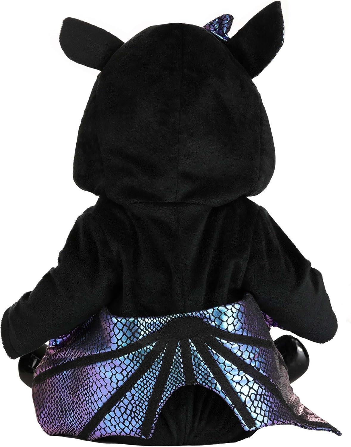 Let your little one take flight in the Shiny Bat Infant Costume, a delightful Halloween outfit designed to make your baby the star of any spooky season celebration. This costume is perfect for baby boys or girls, combining playful details with a touch of Halloween fun that's ideal for infants experiencing their first fall festivities. The costume includes a hooded jumpsuit made of shiny fabric that captures the light and enhances the bat theme. The hood features embroidered bat eyes, shiny bat ears, and a cute hairbow detail, adding a sweet and playful twist to the traditionally spooky bat look. Whether you're dressing up your baby girl or want a gender-neutral costume, this design works for both. With attached wings that stretch from the sleeves, your baby can flutter through Halloween parties, trick-or-treat events, fall photoshoots, or daycare celebrations. The hook-and-loop closure at the front shoulder makes diaper changes and dressing a breeze, especially for busy parents managing active little ones. It's great for themed birthday parties, costume parades, family dress-up nights, or even as a fun outfit for storytime featuring nocturnal animals or Halloween tales. Pair it with sibling costumes for a coordinated group photo, or let your baby be the center of attention all on their own. Whether you're creating keepsake photos or simply making memories, this bat baby costume is the perfect blend of seasonal spirit and everyday comfort. Add it to your fall costume collection today and let your little bat shine! – Hooded Jumpsuit