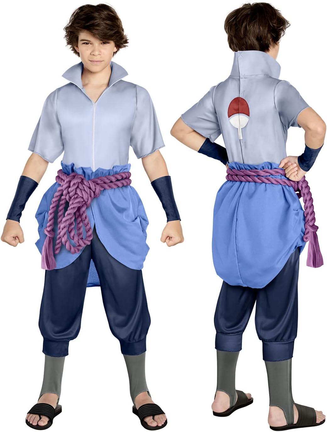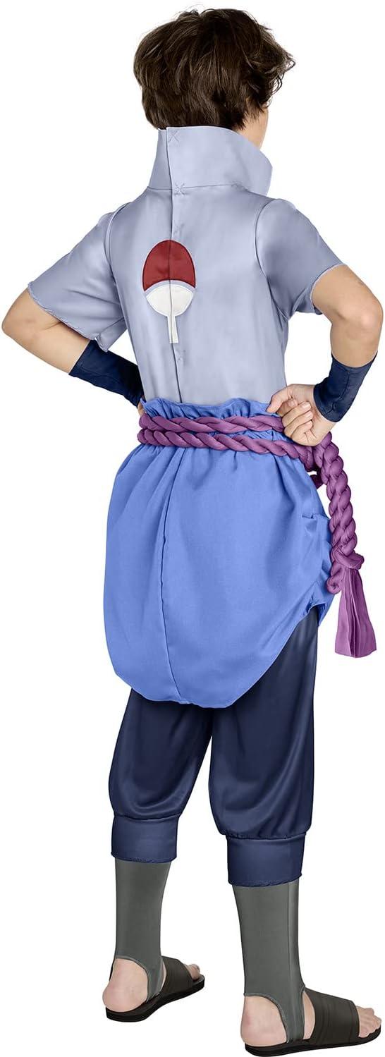 Let your child show off their power with this officially licensed Sasuke costume. They'll be ready for anything that comes their way with the included jumpsuit, skirt, cuffs, and belt. Product Features. Officially licensed. Includes: Jumpsuit, overskirt, arm bands, belt. Material: Polyester. Care: Spot clean. Imported. Sizes: M*, L, XL. Style Number: 103922