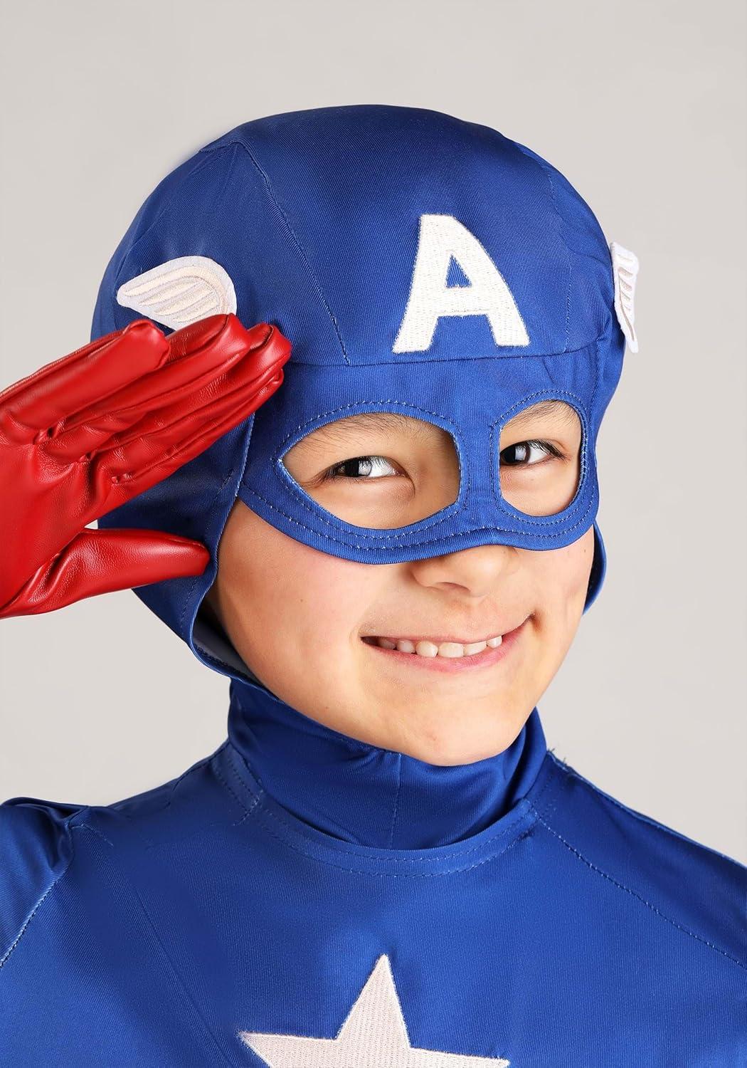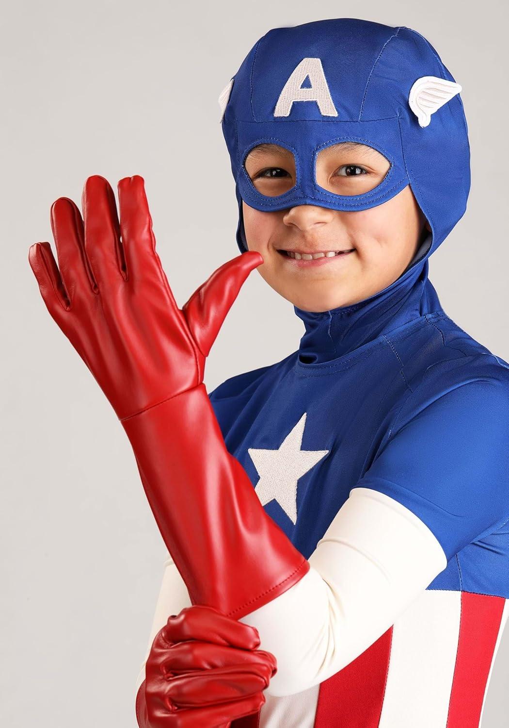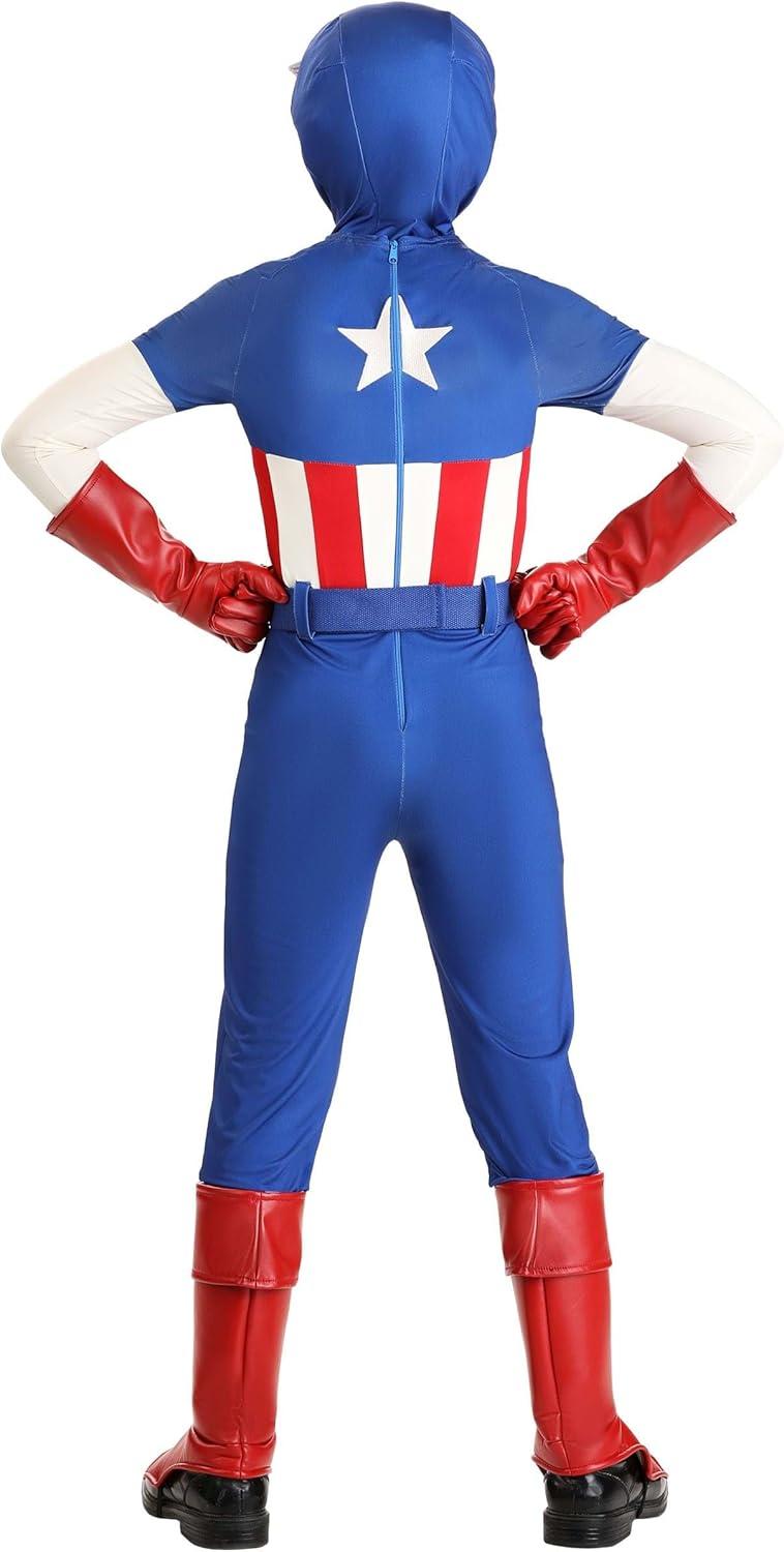 Jazwares Boy’s Premium Marvel Captain America Costume – Classic Cap Suit with Cowl, Gloves, and Boot Covers(Large)