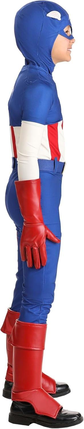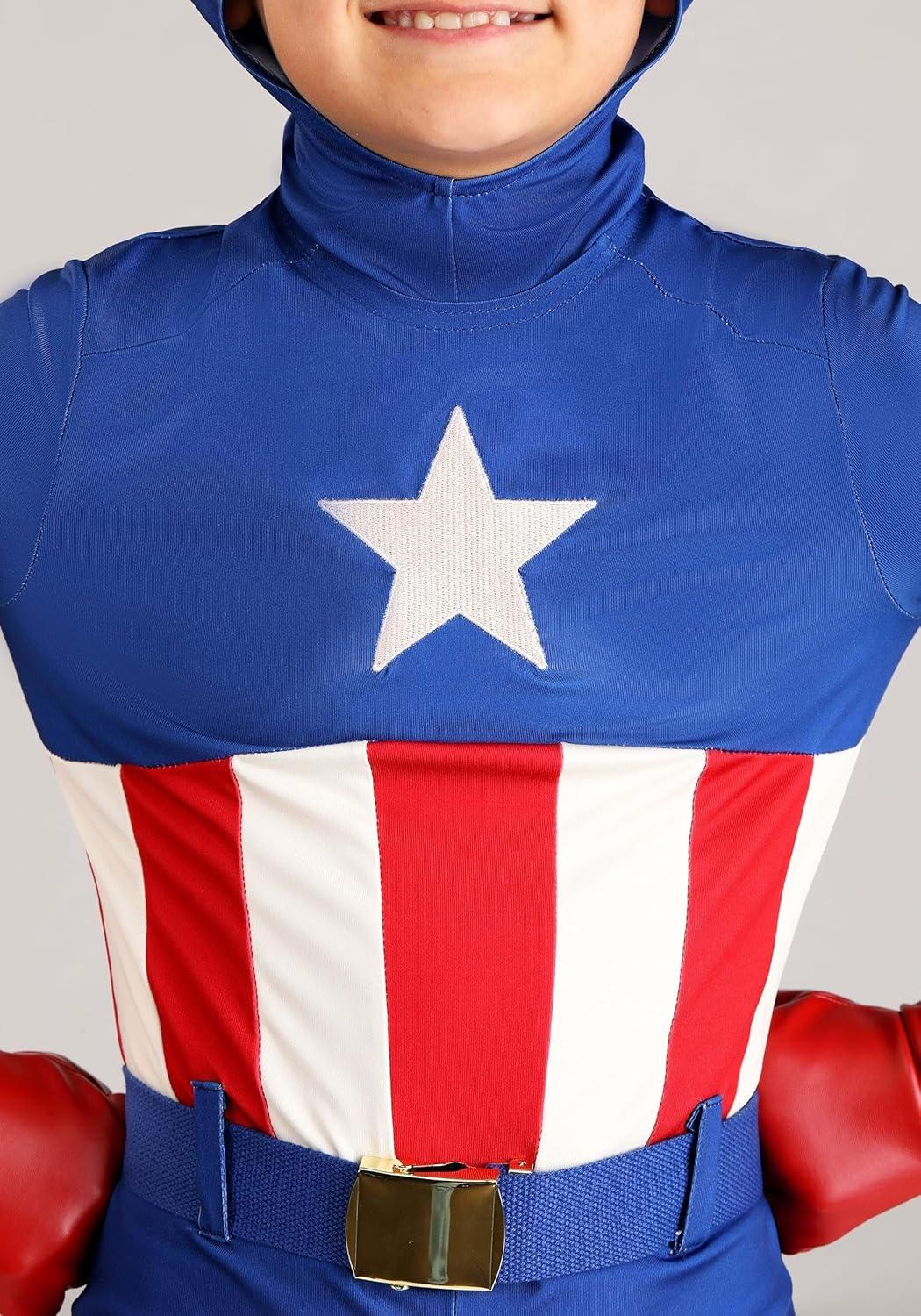 Jazwares Boy’s Premium Marvel Captain America Costume – Classic Cap Suit with Cowl, Gloves, and Boot Covers(Small)