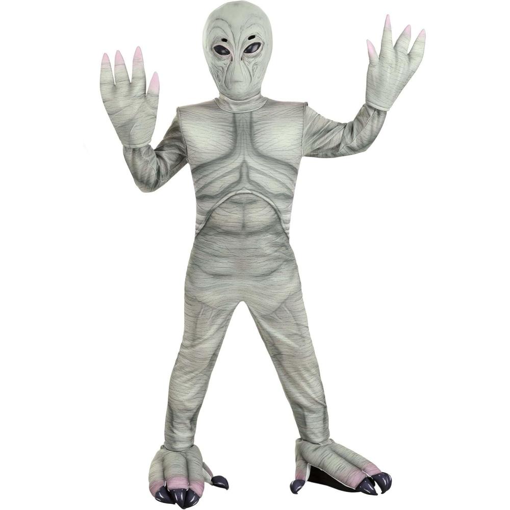 Kids Alien Costume | Gray Extraterrestrial Invader Child Outfit with Mask and Gloves – Grey Area 51 UFO Spaceship Pilot