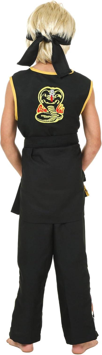 Kids Black Cobra Kai Costume Boys, Sleeveless Karate Gi Uniform Halloween Outfit