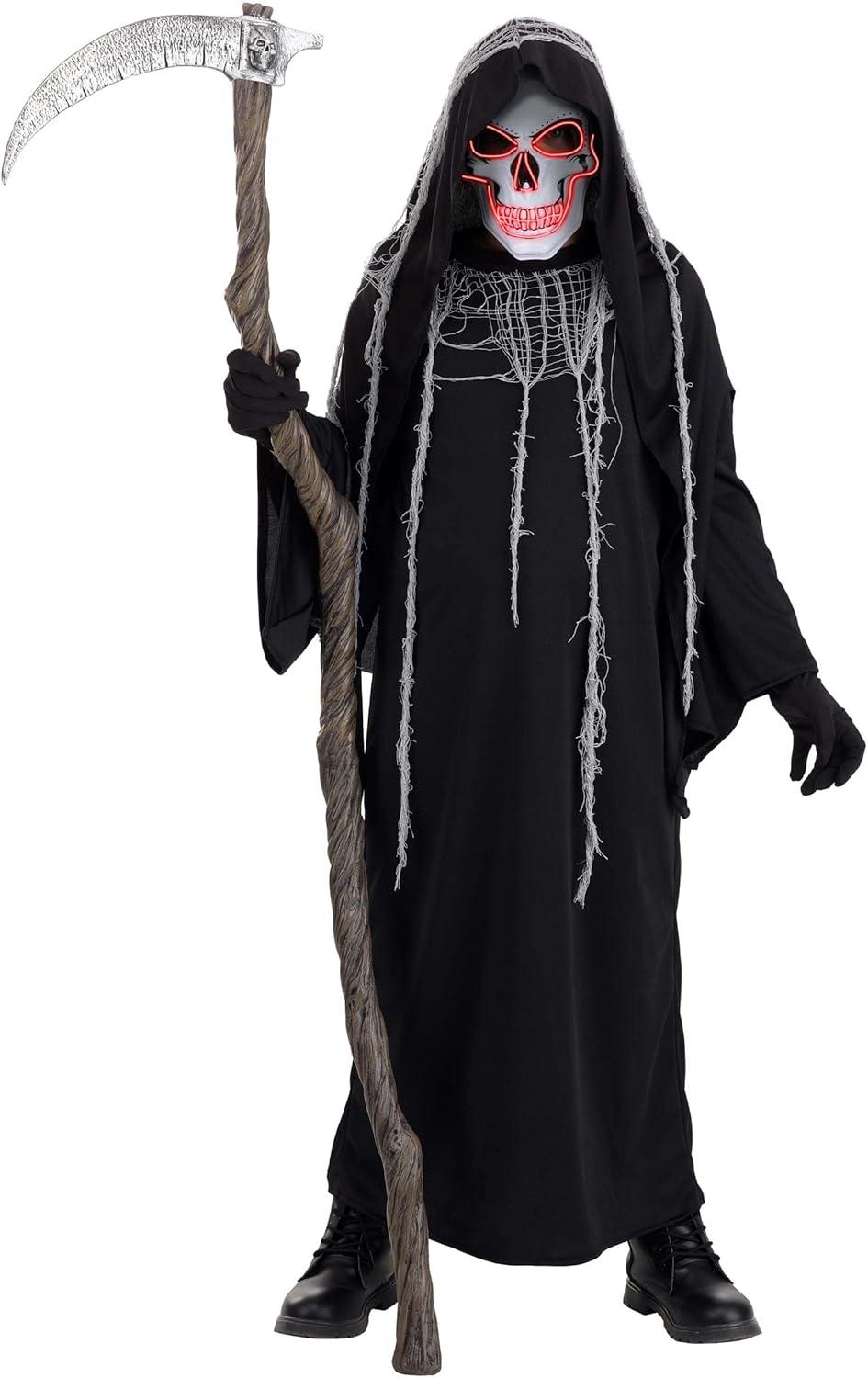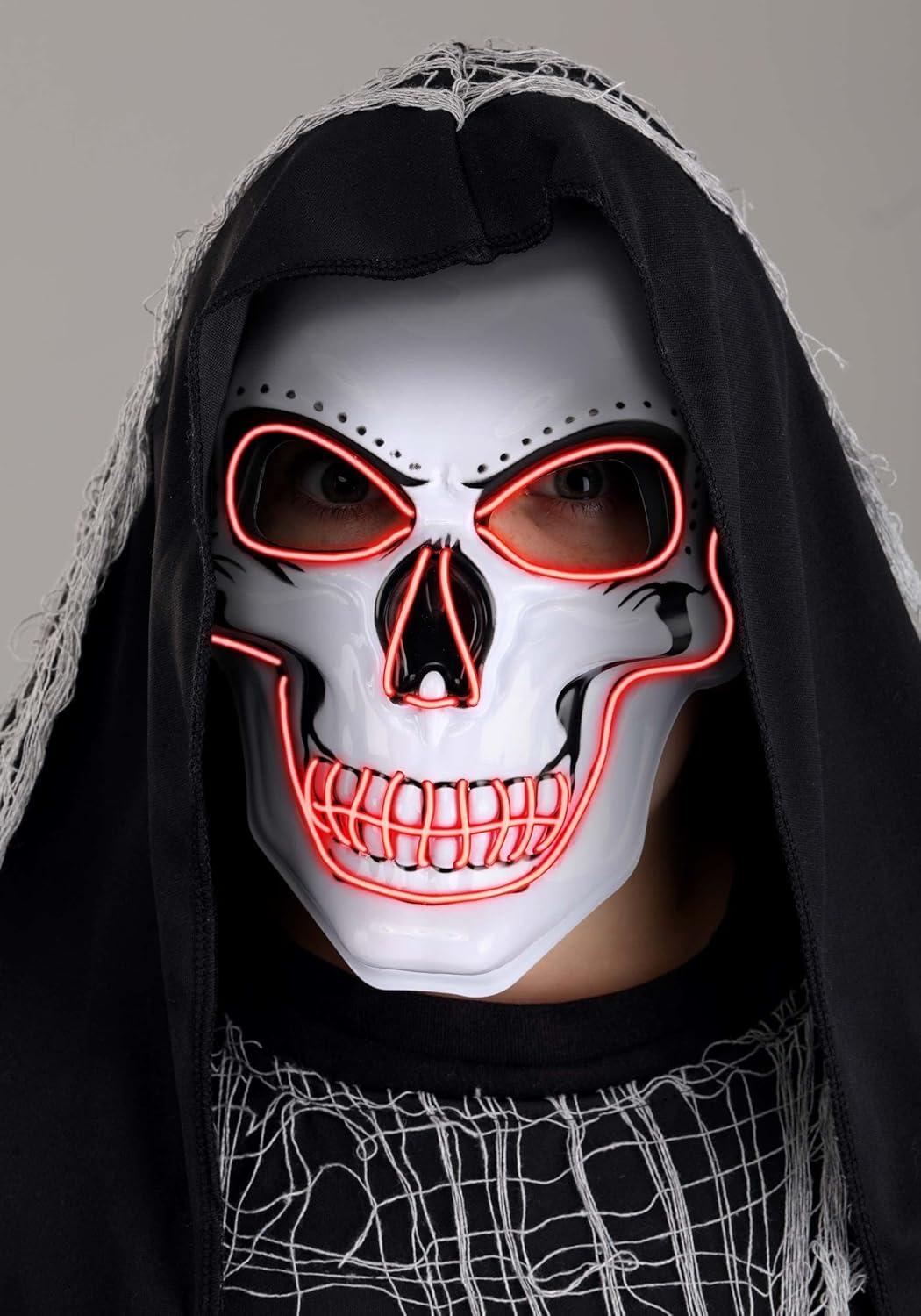 Kid’s Glowing Grim Reaper Costume – Grim Reaper Robe with LED Light-Up Skeleton Mask Accessory for Children