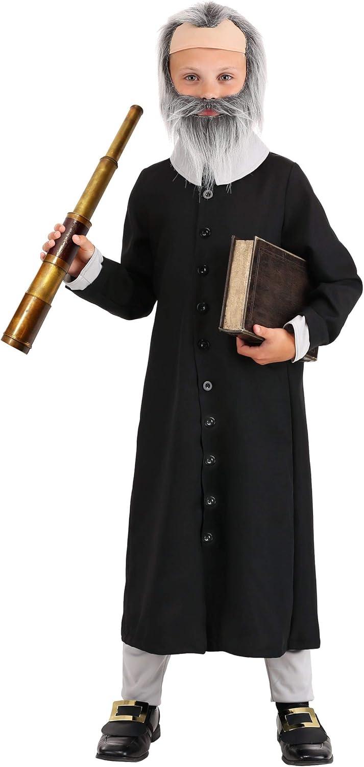 Kids Historical Scientist Costume With Jacket, Pants, And Wig | Galileo Galilei Outfit For Halloween or Cosplay