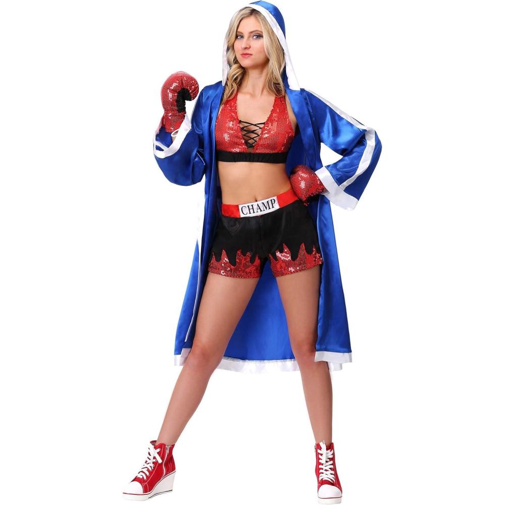 Knockout Beauty Women’s Costume – Sequin Bra, Boxing Robe, and Gloves Set