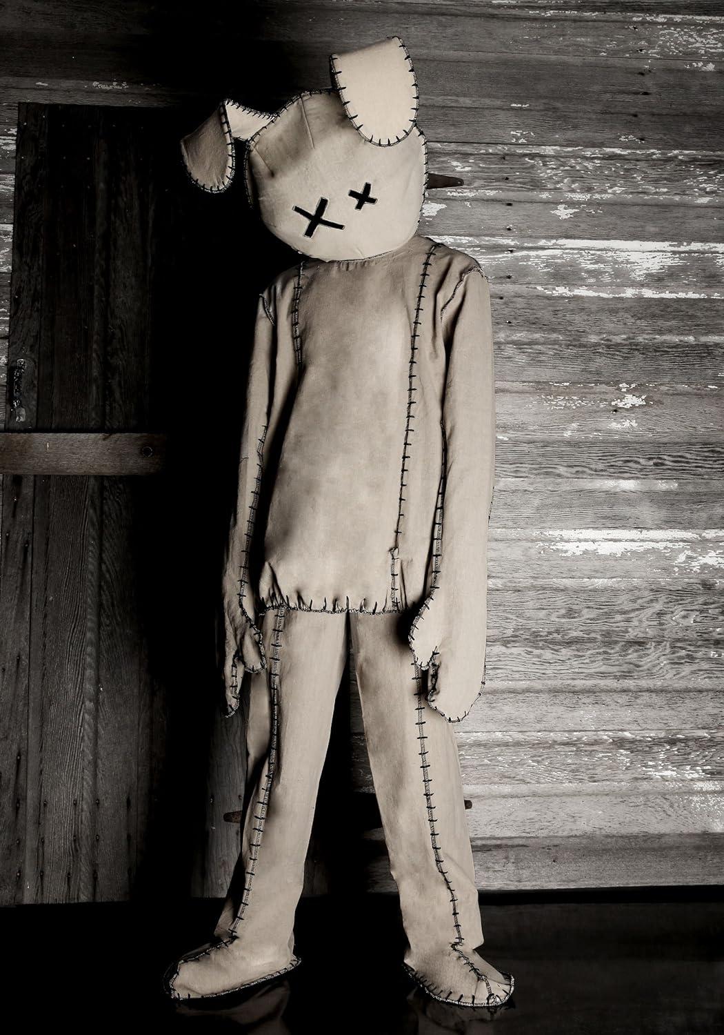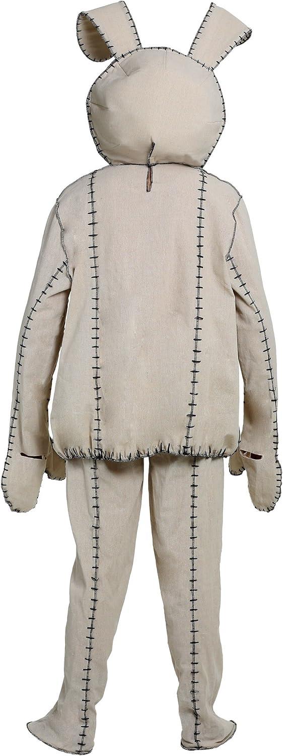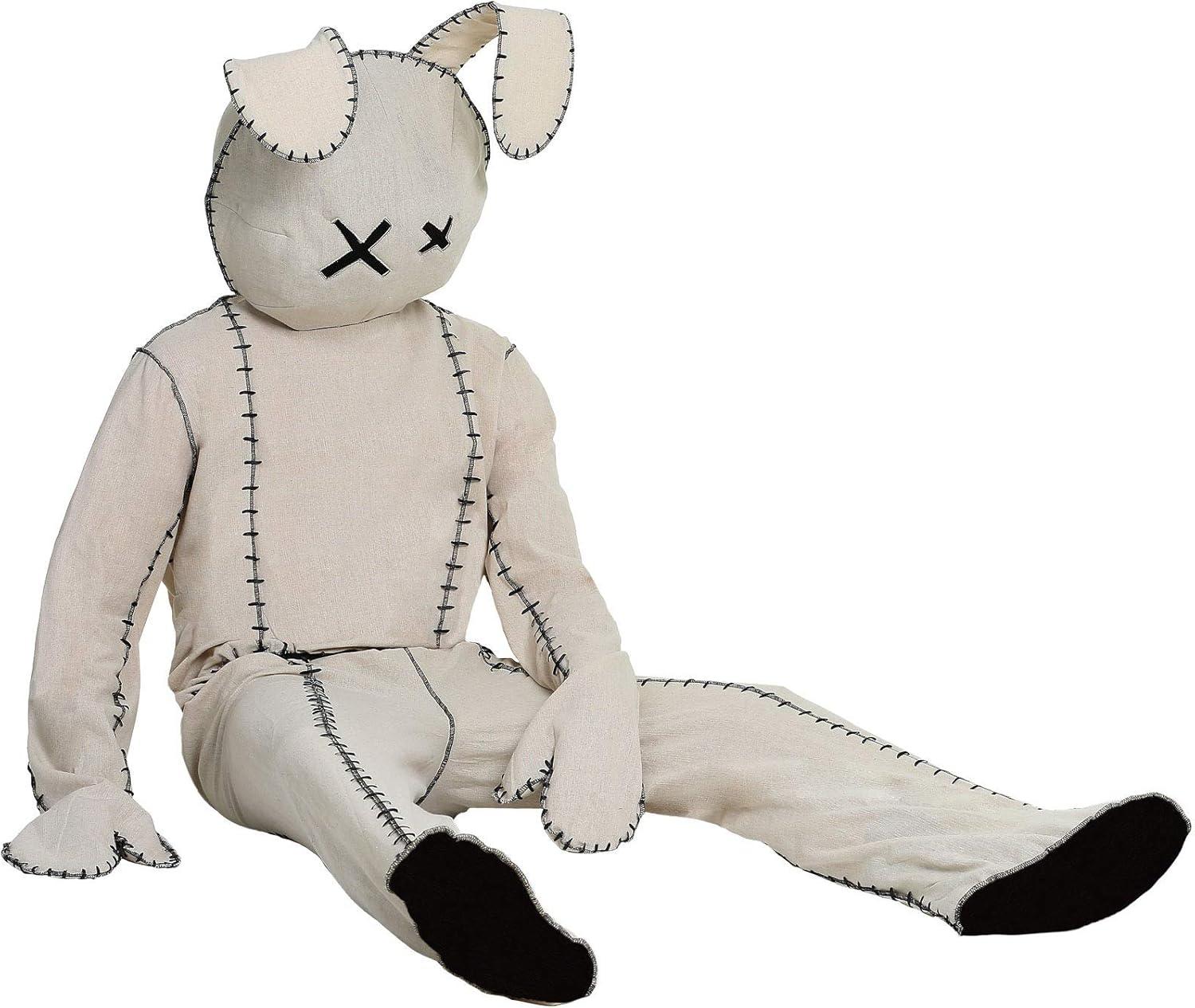 The Fun Costumes Lifeless Bunny Costume We're not always sure where our ideas come from! Our in-house design team is made up of dynamic folks who love the challenge of creating new experiences for all of you. Sometimes that leads us to come up with costumes that we know are bound to be talked about for days (or longer) after you have shown up in them. The creepy details of this Lifeless Bunny costume make it one of our favorite looks! Attention to Detail This costume has a simple look but that doesn't mean we've skimped on the design details. It includes an off-white tunic that has deep stitch designs down the lengths and along the hem. This gives the costume the look of a Velveteen Rabbit gone wrong! The matching pants and attached mitts and booties continue the design, but it is the oversized headpiece that will get folks staring. It features two floppy, stitched ears and a set of irregular stitching for eyes. This eerie costume is made for lasting memories! Product Details: 100% polyester faux linen fabric Tunic fastens with button and fabric loop at back of neck Mitts can flip back to free the hands Pants have elastic waistband Attached booties have vinyl soles Decorative stitching all over tunic and pants Stuffed headpiece covers entire head, fastens with hook and loop at back Mesh-covered eye openings will obstruct vision Ears have wire inside, can be posed as desired Size Chart: M: Chest=52″; Tunic Length=31”; Waist=32-44”; Pants Outseam=44” L: Chest=56″; Tunic Length=31.5”; Waist=36-48”; Pants Outseam=44.5” XL: Chest=60″; Tunic Length=32”; Waist=40-52”; Pants Outseam=45” About Us: Fun Costumes are exclusively made by us and begin with passion, teamwork, and industry expertise decades in the making. Our products are proof that with the right people even a simple idea can grow into something incredible. We started in a small garage in Minnesota, providing costumes to our local community, and now we’re creating costumes for people all around the world! Mysteri