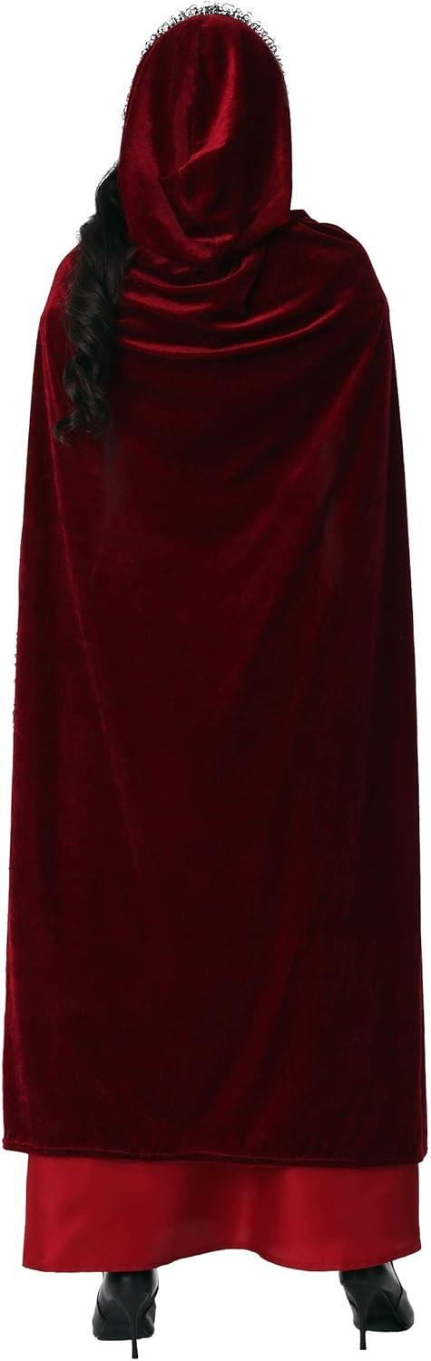 Little Red Riding Hood Costume for Women with Corset Top, Skirt, Velvet Hooded Cape, Off-Shoulder Sleeves