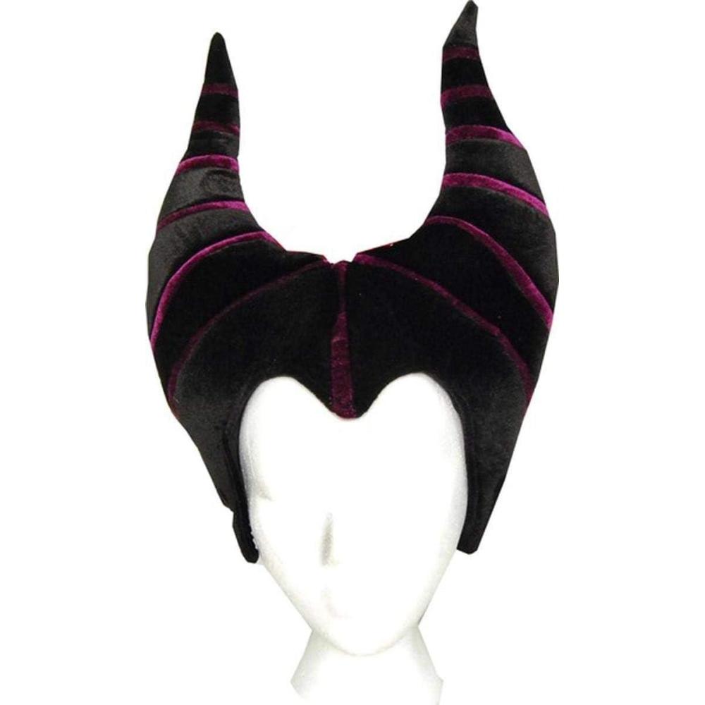 Maleficent Costume Headpiece – Black Horned Hat with Dark Purple Stripes and Adjustable Fit