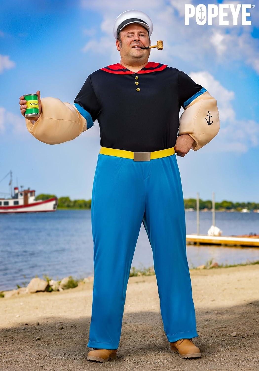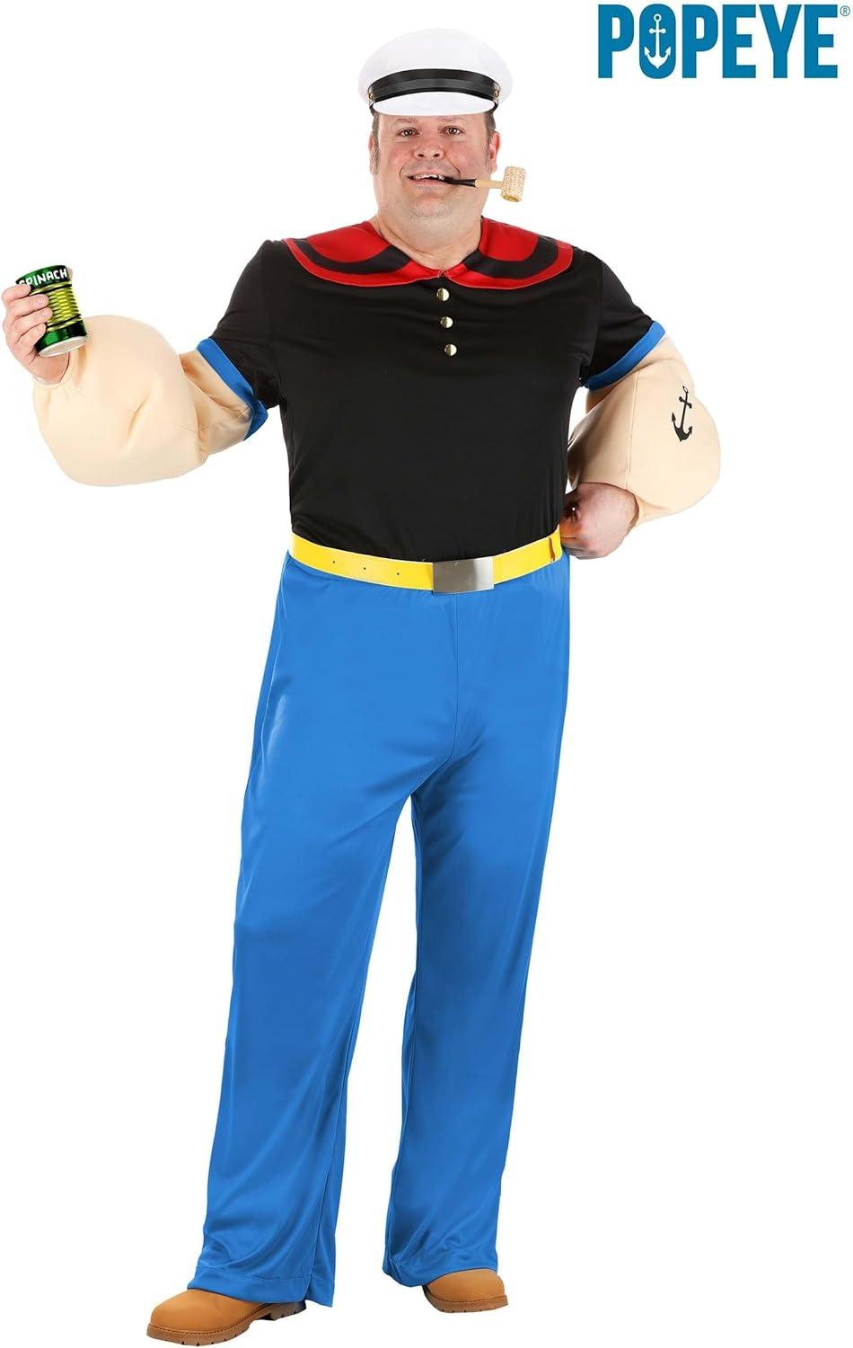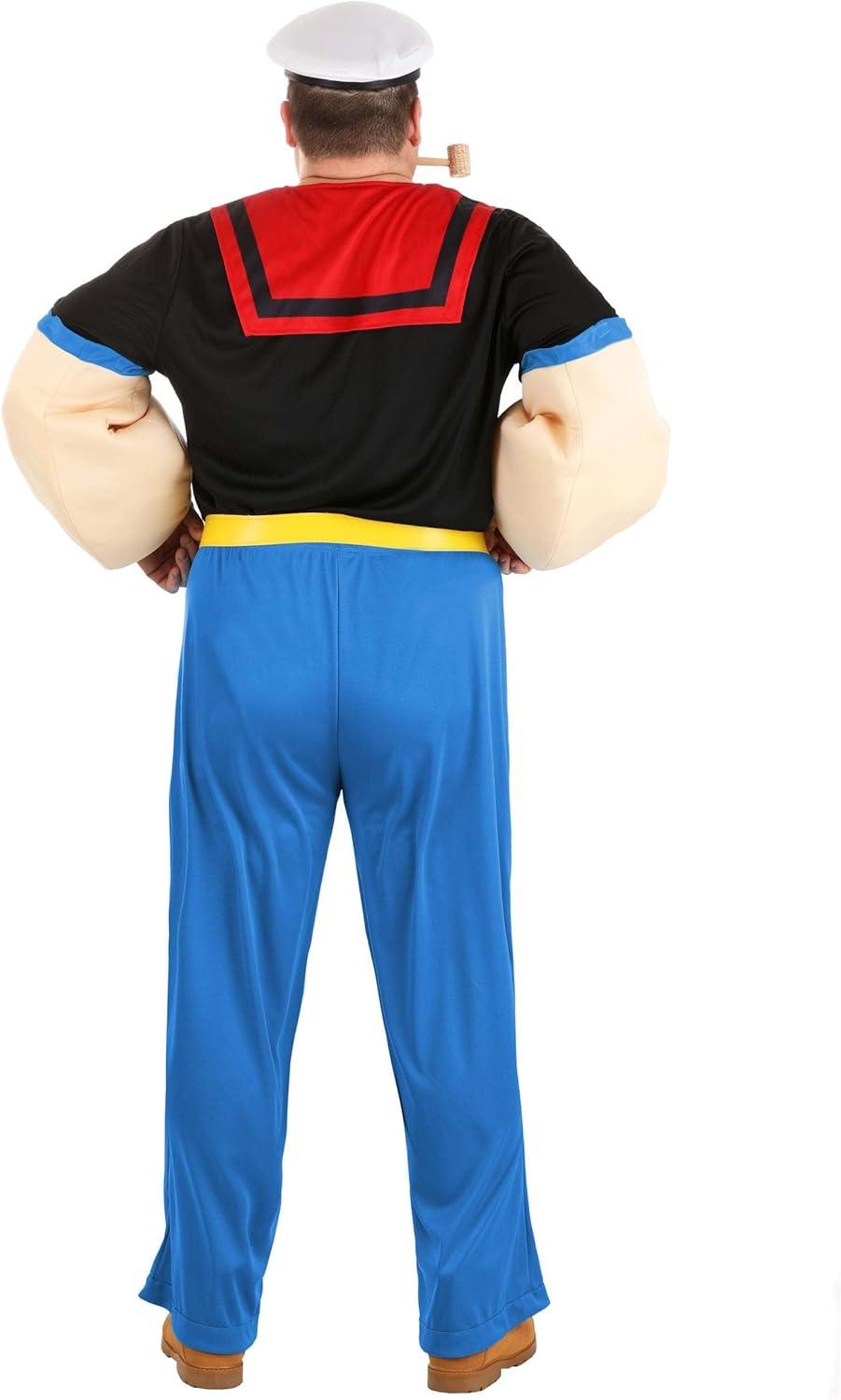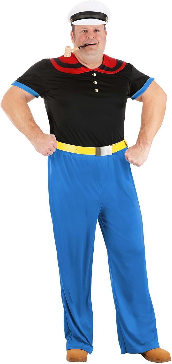 Mens Plus Size Deluxe Popeye the Sailor Man Costume with Hat and Pipe, Halloween Outfit for Adults