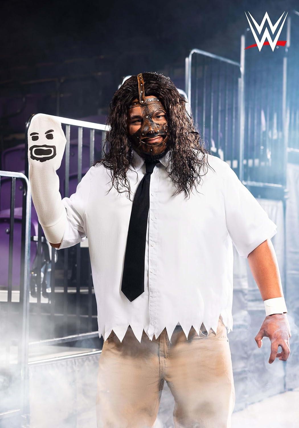 Men’s Plus Size WWE Costume with Shirt, Tie, Mask, and Sock Puppet, Step Into the Ring as Mankind