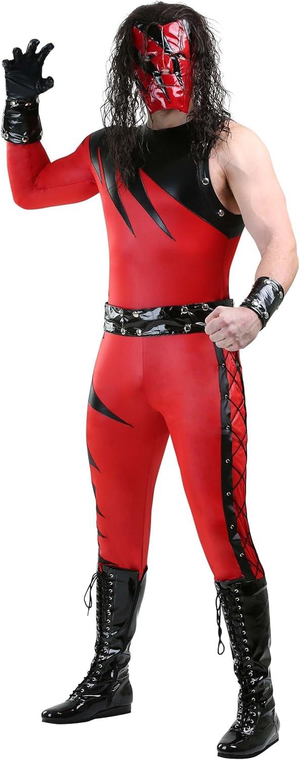 Men’s Plus Size WWWE Kane Pro Wrestler Costume Jumpsuit for Adults