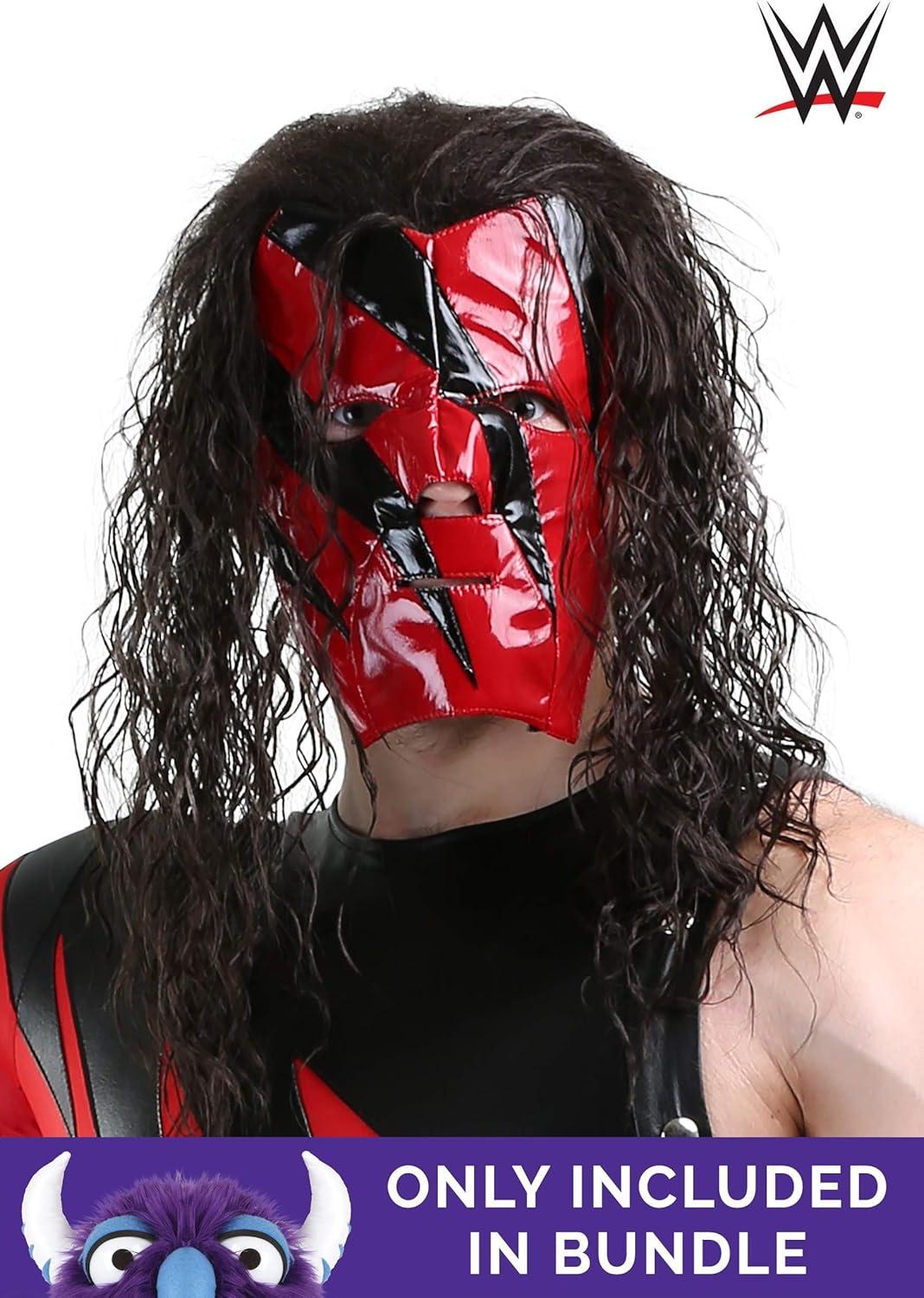 Mens WWE Kane Costume Jumpsuit with Mask, Glove, Wrist Band, & Belt(Bundle W/ Wig)
