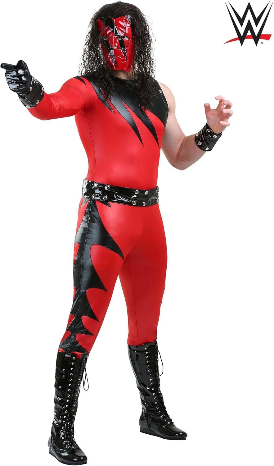 Mens WWE Kane Costume Jumpsuit with Mask, Glove, Wrist Band, & Belt(Costume)