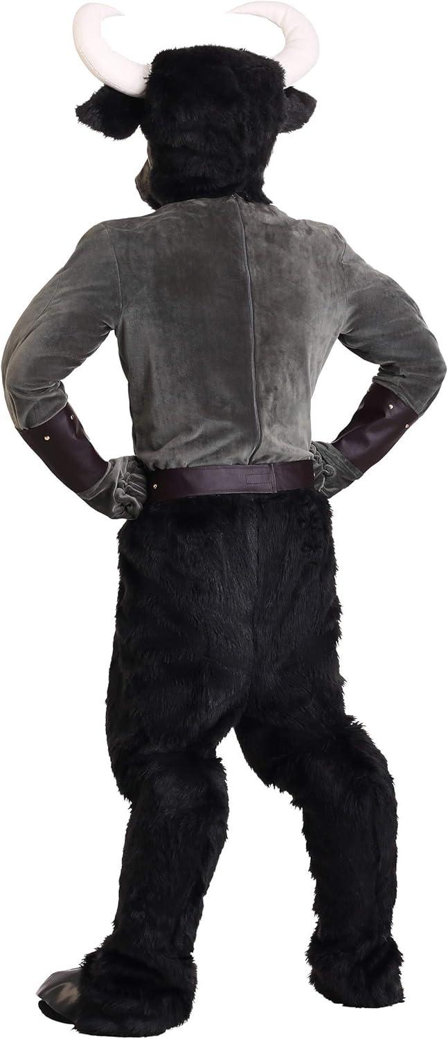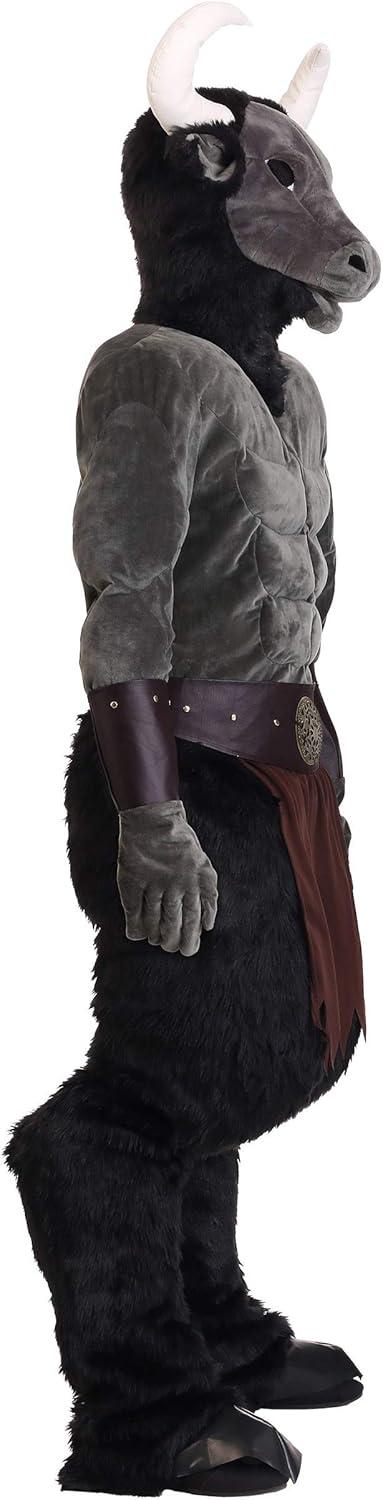 Unleash your inner mythical creature with our adult minotaur costume for men. This Halloween costume for adult men will make you the star of any Halloween or mythical-themed event. The minotaur costume is a complete package, featuring a padded muscle shirt, minotaur mask, gloves, loincloth belt, and faux fur pants. Our Halloween costumes for men are designed with comfort in mind, and the minotaur costume is no exception. The muscle shirt has soft, stuffed muscles in a plush velour fabric, while the waistband of the faux fur pants has a flexible elastic waistband. The bull mask is a signature part of the minotaur costume for men, making you the ruler of your very own mythical labyrinth. This adult minotaur costume, an exclusive product of Fun Costumes, is proof that with the right people, even a simple idea can grow into something incredible.