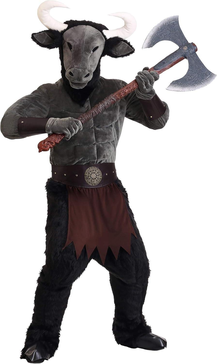 Minotaur Costume For Men | Mythical Creature Outfit With Shirt, Pants, Loincloth Belt, Full-Head Mask, Gloves