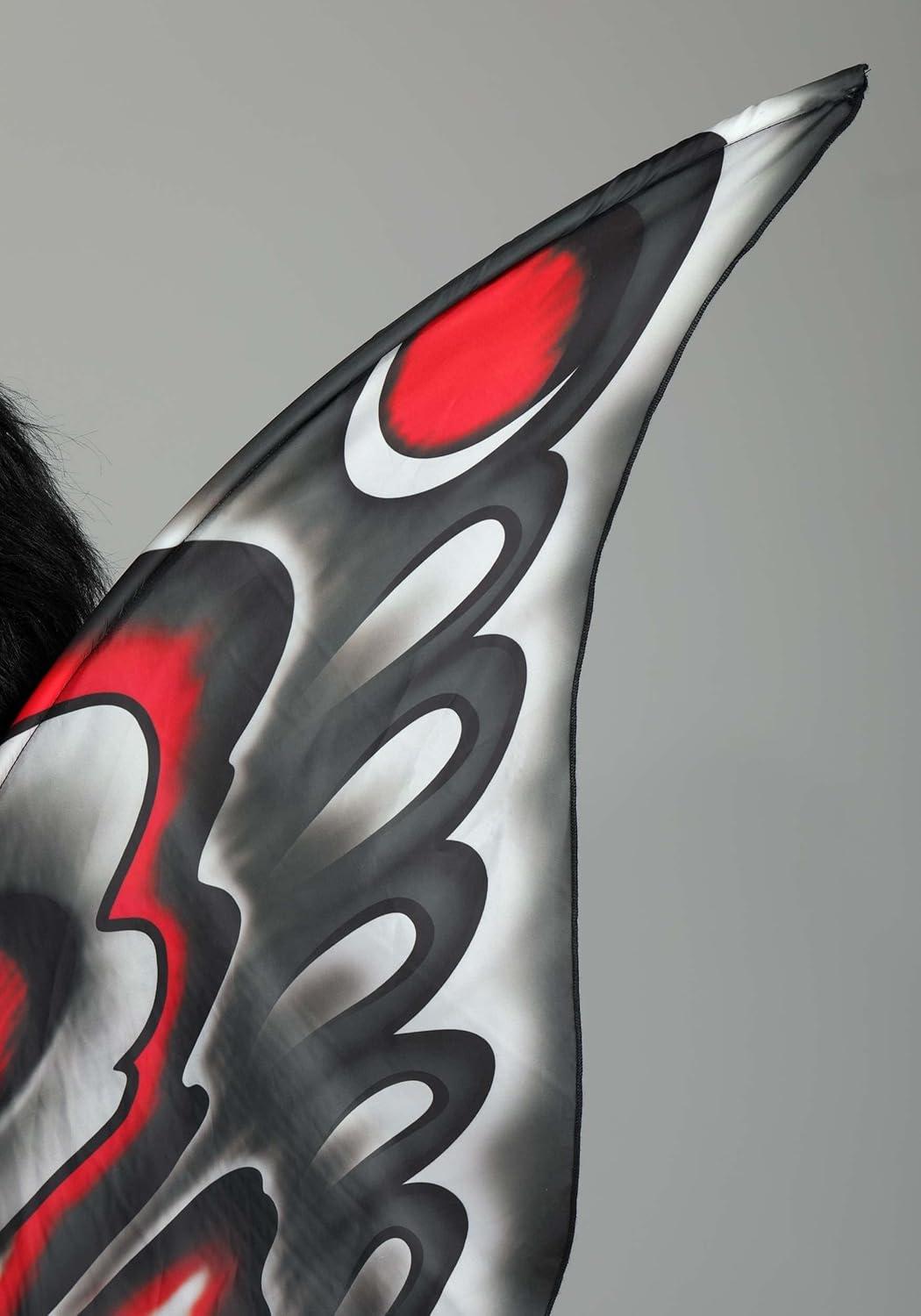 Become the mysterious and elusive creature of West Virginian folklore with this Adult Mothman Costume, designed to capture the eerie essence of the legendary cryptid. This full-body Halloween outfit is inspired by the chilling sightings from the 1960s in Point Pleasant, where witnesses described a winged humanoid with glowing red eyes. With its sleek, black faux fur body and oversized wings, this Legendary Mothman Outfit is perfect for those who want to make a hauntingly unforgettable appearance at any costume party or Halloween event. Whether you're a believer in the paranormal or simply fascinated by cryptid lore, this costume is the ideal way to channel your inner mythic creature. The Full Body Mothman Costume includes a faux fur-covered jumpsuit with an easy-to-use zipper at the back for convenience. The arms and legs are made of durable poly-knit fabric for comfort and flexibility. The costume's crowning feature is its ominous headpiece with red mesh eyes that allow limited vision, mimicking the chilling gaze that witnesses have reported for decades. The headpiece secures with a hook and loop fastener at the back of the neck for a snug fit. Oversized nylon wings, complete with plastic poles to help them stand out, attach to the back of the jumpsuit, allowing you to recreate Mothman's terrifying silhouette as you spread your wings. Whether you're dressing up for Halloween, going to pride, attending a cryptid-themed event, or simply showing off your love for mythical creatures, this Black Mothman Costume is sure to impress. The intricate details and high-quality materials make this Full Body Mothman Halloween Outfit is the perfect choice for anyone looking to embody one of America’s most famous and mysterious legends. Make your grand entrance as the Mothman Mythical Cryptid and watch as you send shivers down everyone's spine! – Jumpsuit – Headpiece – Wings – Pair of Gloves
