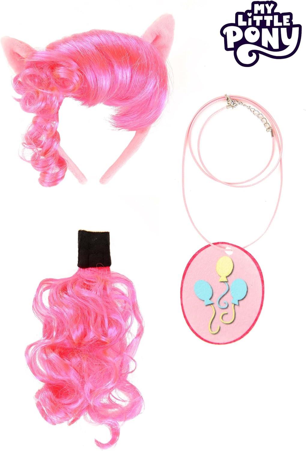 Get ready to unleash the magic of friendship and fun with the My Little Pony Pinkie Pie Headband, Tail, and Cutie Mark Necklace Kit! This enchanting officially licensed costume accessory set is a must-have for all My Little Pony fans, designed to bring smiles and sparkle wherever you go. Crafted from high-quality 100% polyester and all-new materials, this kit includes a plush-covered plastic headband adorned with adorable minky ears and faux hair, perfectly capturing Pinkie Pie's iconic look. The faux hair tail, made from soft fleece fabric with a convenient hook and loop fastener, adds an extra touch of whimsy and charm to your ensemble. Completing the magical transformation is the felt cutie mark necklace on a cord with a lobster claw closure, allowing you to wear it with ease and confidence at themed parties, cosplay events, or any occasion that calls for a dash of Equestria magic. So, slip into this exclusive and officially licensed Pinkie Pie costume kit, spread joy and laughter, and delight in the delight of being the life of the party! Let your inner pony shine with this Pinkie Pie accessory set and make every moment a celebration of friendship and fun! – Headband – Tail – Necklace