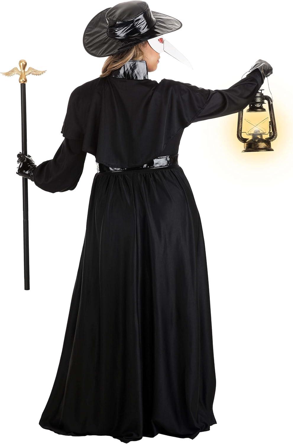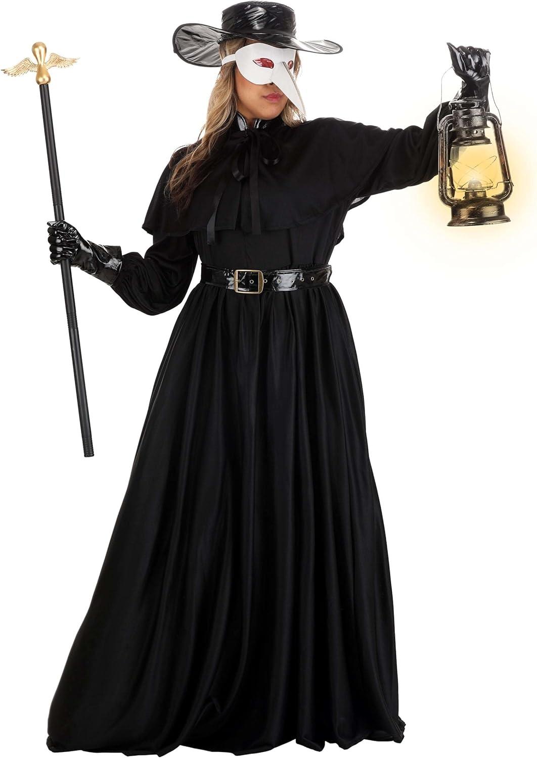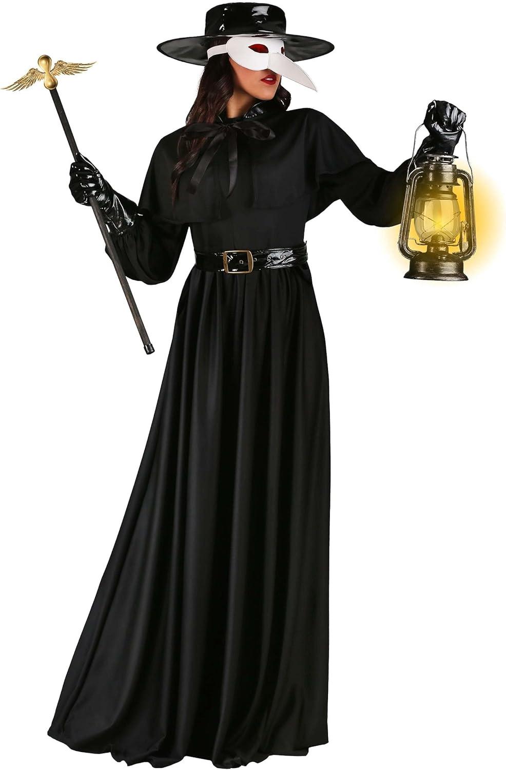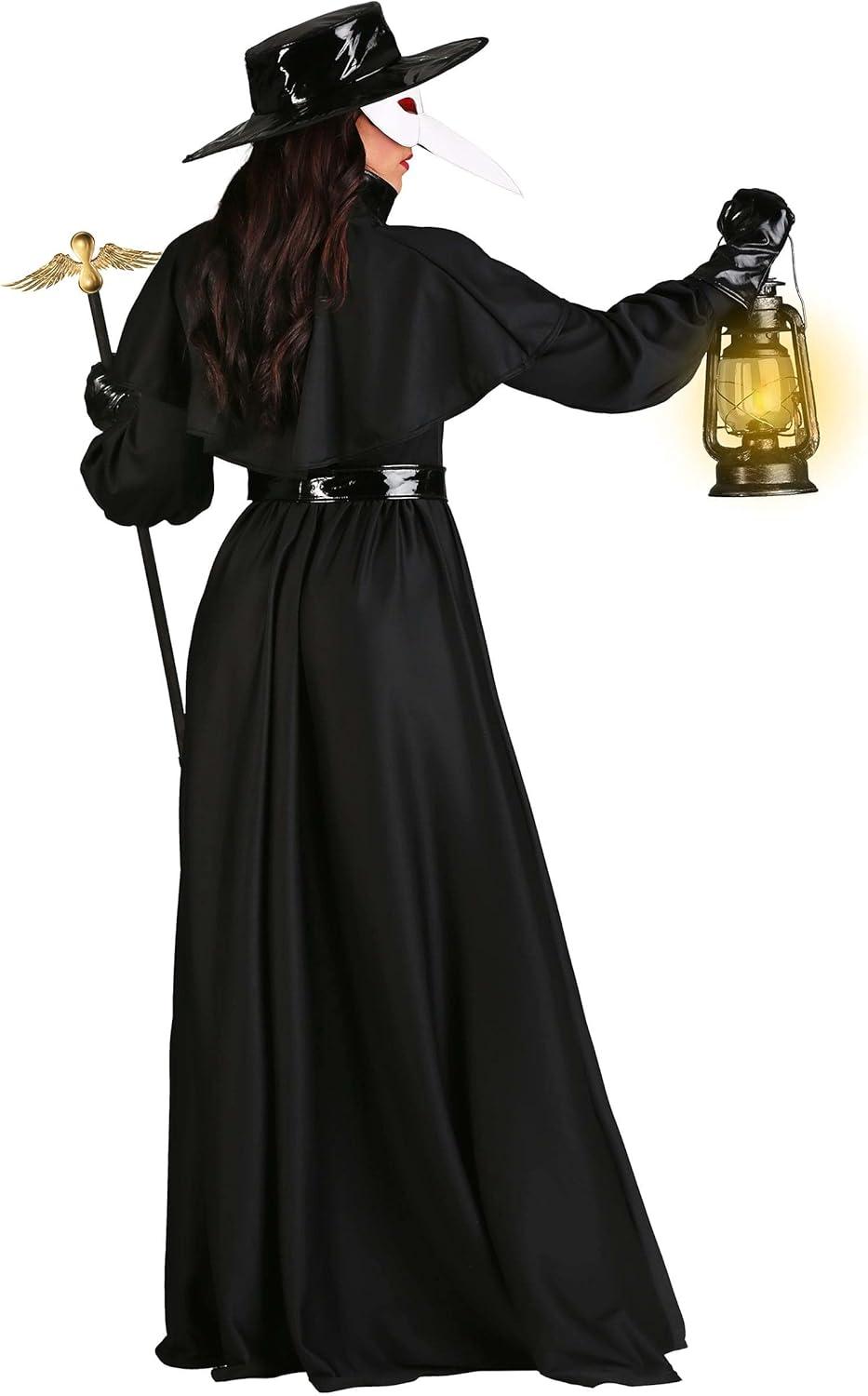 The Fun Costumes Women's Black Plague Doctor Costume We take Halloween seriously at Fun Costumes and that means we're experts when it comes to scary Halloween costume styles. That's why we're very proud to offer this exclusive Plague Doctor Mask Costume. Artfully and expertly designed right in our own costume design studios, we studied plague doctor masks and the medieval history books to recreate the historical look of Black Plague Doctors. We're proud of the results and we're sure you'll love its scary styling at your next Halloween party! Product Design: Show that you have what it takes to survive the plague when you dress up in this modern-day take on the historical Plague Doctor costume of the middle ages. This dark and mysterious look includes a long black dress, belt, and the white bird mask with an elongated beak and red mesh eyes. Top everything off with the wide-brimmed hat and the included gloves to treat your own patients! Product Details: 100% polyester Zipper closure Hat, gloves, belt, & collar are a shiny black material Belt with gold buckle White mask with elastic Red mesh in the eyes Collar has a tie closure Size Chart: S: Chest=35 1/2″; Waist=28 1/2″; Sleeve Length=25″; Dress Length=59 1/2″; Cape Length=13″; Hat Circumference=24″ M: Chest=37 1/2″; Waist=30 1/2″; Sleeve Length=25″; Dress Length=59 1/2″; Cape Length=13 1/2″; Hat Circumference=24″ L: Chest=40 1/2″; Waist=34″; Sleeve Length=25″; Dress Length=59 1/2″; Cape Length=14″; Hat Circumference=24″ XL: Chest=43″; Waist=37″; Sleeve Length=25″; Dress Length=59 1/2″; Cape Length=14 1/2″; Hat Circumference=24″ About Us: Fun Costumes are exclusively Made By Us and begin with passion, teamwork, and industry expertise decades in the making. Our products are proof that with the right people even a simple idea can grow into something incredible. We started in a small garage in Minnesota, providing costumes to our local community, and now we're creating costumes for people all around the world. When you w