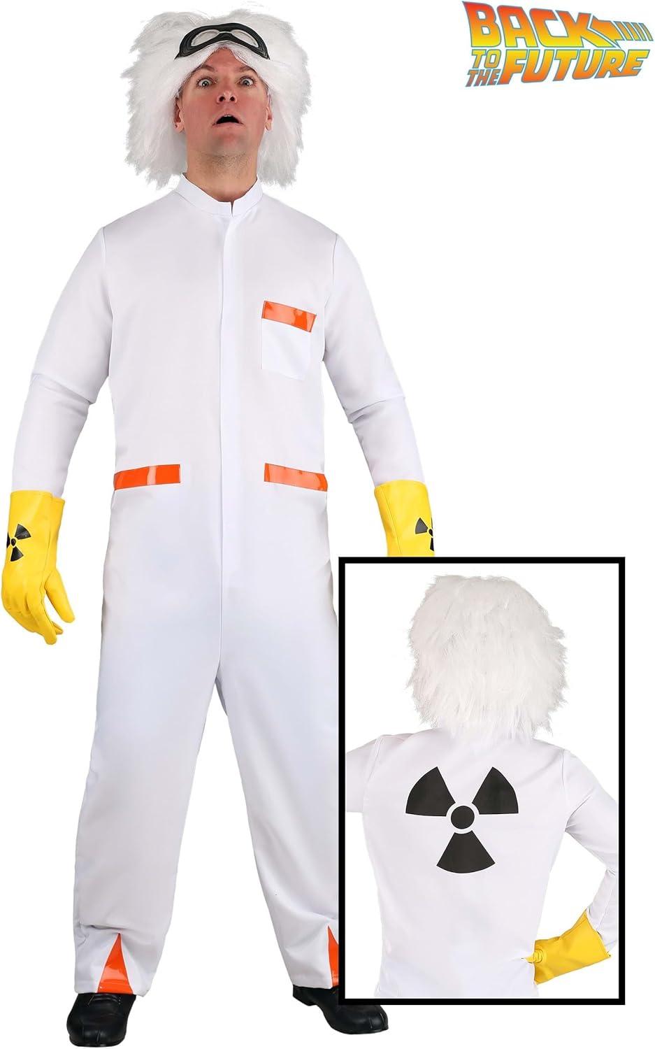 Plus Size Adult Emmett Brown Costume Men’s Back to the Future Doc Brown Outfit, BTTF Halloween Dress Up Science Jumpsuit