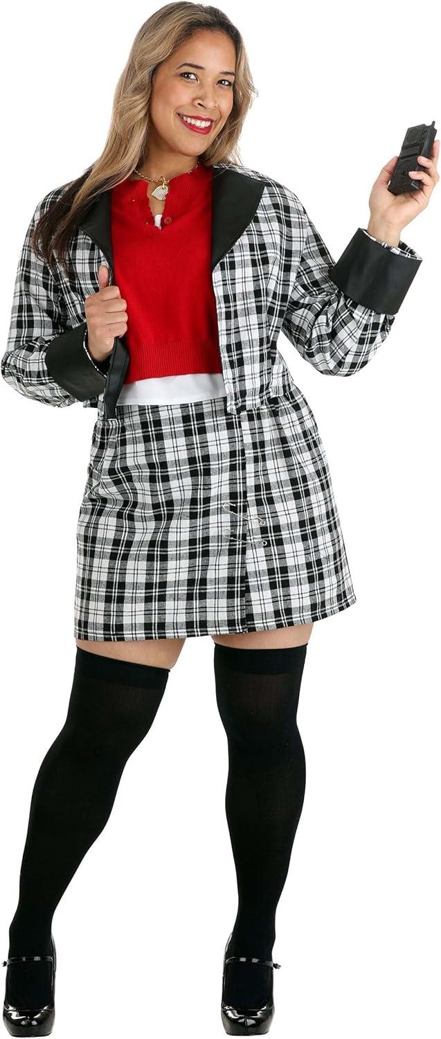 Plus Size Clueless Dee Costume for Women – Retro 90’s TV Character Outfit with Jacket, Tank Top Sweater, Skirt & 2 Pins