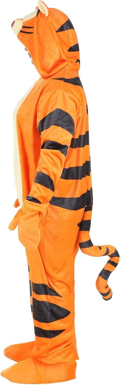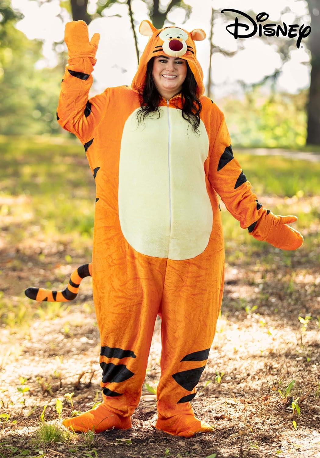 Winnie the Pooh Plus Size Tigger Costume: Tigger is certainly not afraid to be himself. This bold and bouncy character hardly ever seems to be low on energy, and although his friends are sometimes frustrated with his antics, he always makes us smile! Now you can embrace your own bouncy side with our Plus Size Deluxe Tigger Costume. This officially licensed costume was inspired by the beloved character from Disney's Winnie the Pooh. It starts with a soft plush jumpsuit that zips down the front. Black stripes and a white tummy patch add detail to the orange suit, which is finished off by Tigger's face on the hood. An attached striped tail in the back and a pair of foot covers complete this fun head-to-toe look! Product Details: Crafted from 100% microfiber fleece fabric, this costume provides a soft touch that ensures a delightful experience Convenient front zipper on the jumpsuit ensures easy wearing and removal Designed with practicality in mind, the mitts sewn to the sleeve cuffs can be flipped back, freeing the hands for a variety of activities. Sleek rib-knit detailing graces ankle cuffs, adding a touch of finesse and extra comfort The tail is thoughtfully positioned on the jumpsuit's seat and features a wire inside allowing you to gently bend and position the tail as desired The hood recreates Tigger's face with its soft sculpted ears and muzzle and embroidered facial features Traverse the whimsical woods with ease using foam-backed shoe covers, complete with ribbed ankle cuffs, a toe pocket, and an elastic band underfoot, adding the perfect finishing touch Dress just like your favorite characters from Disney's Winnie the Pooh with this officially licensed Disney Tigger costume. Size Chart: 2X: Chest=59″; Sleeve Length=26″; Torso=43 1/2″; Inseam=28″ 3X: Chest=63″; Sleeve Length=26 1/2″; Torso=45 1/4″; Inseam=28″ 4X: Chest=67″; Sleeve Length=27″; Torso=47″; Inseam=28″ About Us: Fun Costumes are exclusively made by us and begin with passion, teamwork, and industry