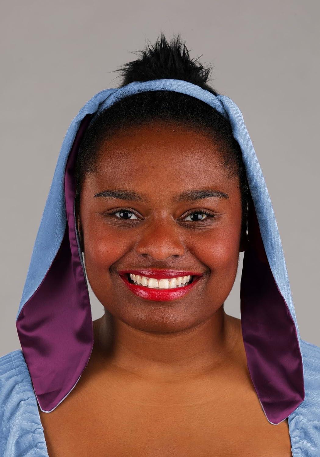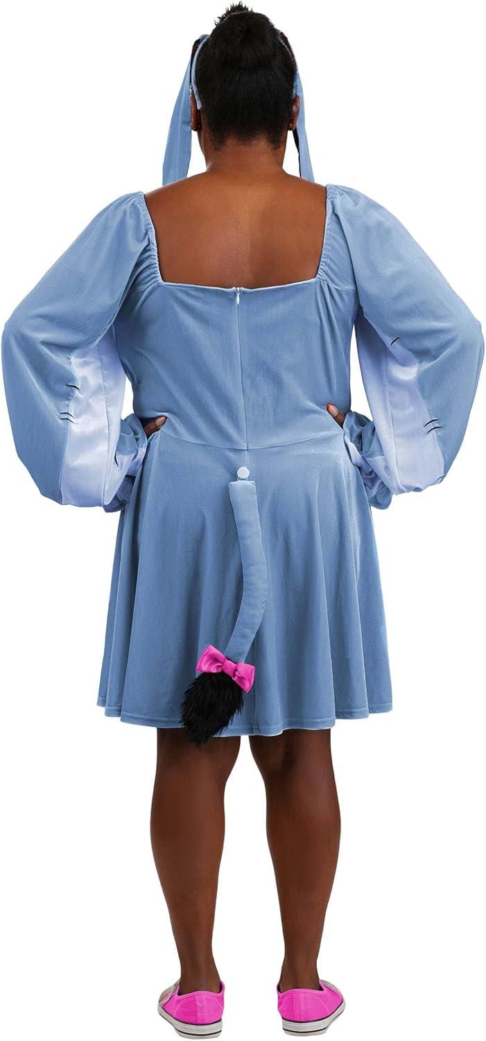 Share a little gentle charm with the Plus Size Disney Eeyore Costume for Women, the perfect pick for fans who appreciate the softer side of the Hundred Acre Wood. With its calm color palette and cozy fit, this costume channels Eeyore's kind-hearted nature while keeping things stylish and fun. The light blue dress features a blue-grey front panel that mimics the character's look, and the stretchy fabric offers comfort whether you're heading to a party or lounging through a relaxed costume day. The easy-to-use back zipper makes getting dressed simple, and the detachable tail adds a sweet and playful touch that fans will recognize right away. To finish the look, the headband includes Eeyore's floppy ears with soft satin accents, giving the whole outfit a dose of heartwarming nostalgia. It's a lovely way to bring this thoughtful friend to life for Halloween, fan events, or anytime you want a cozy costume with a gentle smile. – Dress – Headband – Tail