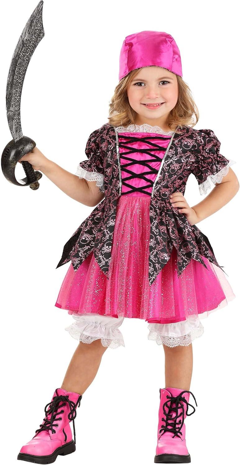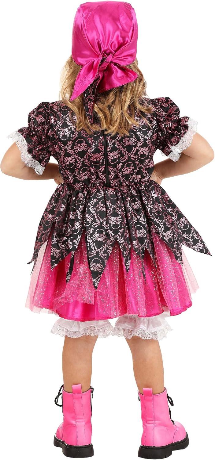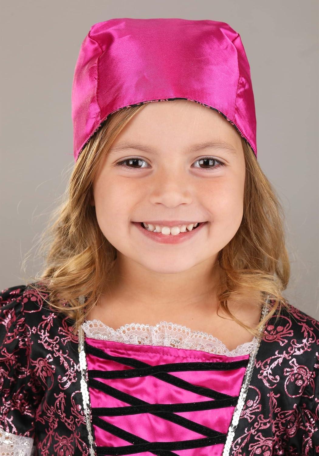 Precious Pink Pirate Costume for Toddler’s – Girl’s Buccaneer Dress With Lace Edging, Bloomers & Bandana Hat