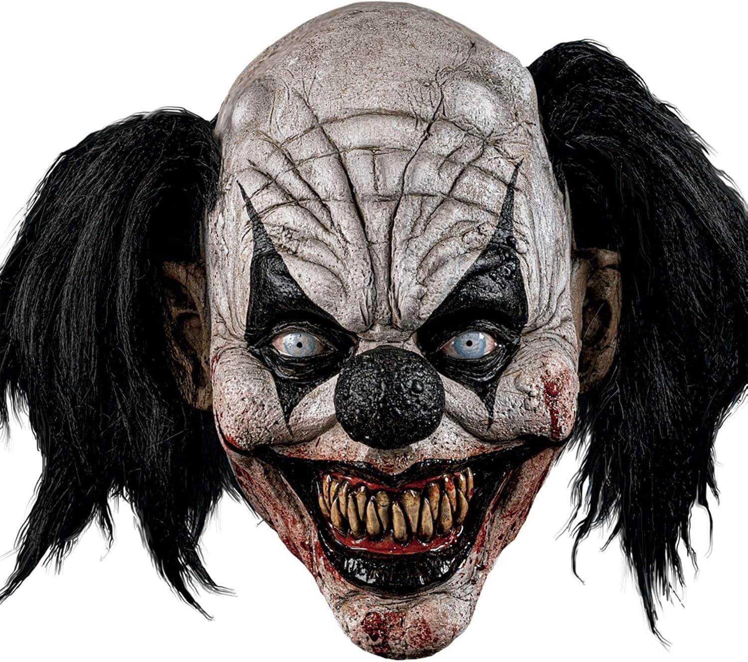 Constructed from 100% polyester, this costume melds faux suede, satin, and stretch knit fabrics, ensuring durability while offering a uniquely textured appearance. The faux suede tunic is both comfortable and convenient, boasting a back zipper and an elastic back waistband for a tailored fit. The tunic's puffed satin sleeves with ruffled elastic cuffs add to the carnival aesthetic, while two faux fur puffs at the center front enhance the eerie clown visage. What truly sets this costume apart is the all-over printed blood stains and spatter. Gruesomely present on all pieces, it lends an air of dark mystery, hinting at tales of the macabre. For ease of wear, the pants come with an elastic waistband. Their design stands out: puffed satin from the waist to just below the knees, transitioning to a fitted stretch knit over the lower legs. This dual texture creates a striking visual contrast, perfect for a carnival creature of the night. The “blood” spattered shoe puffs match the faux fur puffs on the tunic and are designed with an elastic band around the instep, ensuring a snug fit. Completing the horrifying look are forearm-length hands made of molded latex, with an access slit on the palm side for practicality. But the crowning glory of this ensemble is undoubtedly the mask. Crafted from molded latex and featuring attached synthetic hair, it covers the entire face and top of the head. Small eye slits above the character eyes allow for limited vision, ensuring that while you can see out, those who gaze upon you are met with a sight they won't soon forget. – Tunic – Pants – Collar – Mask – Pair of Hands – Pair of Shoe Puffs