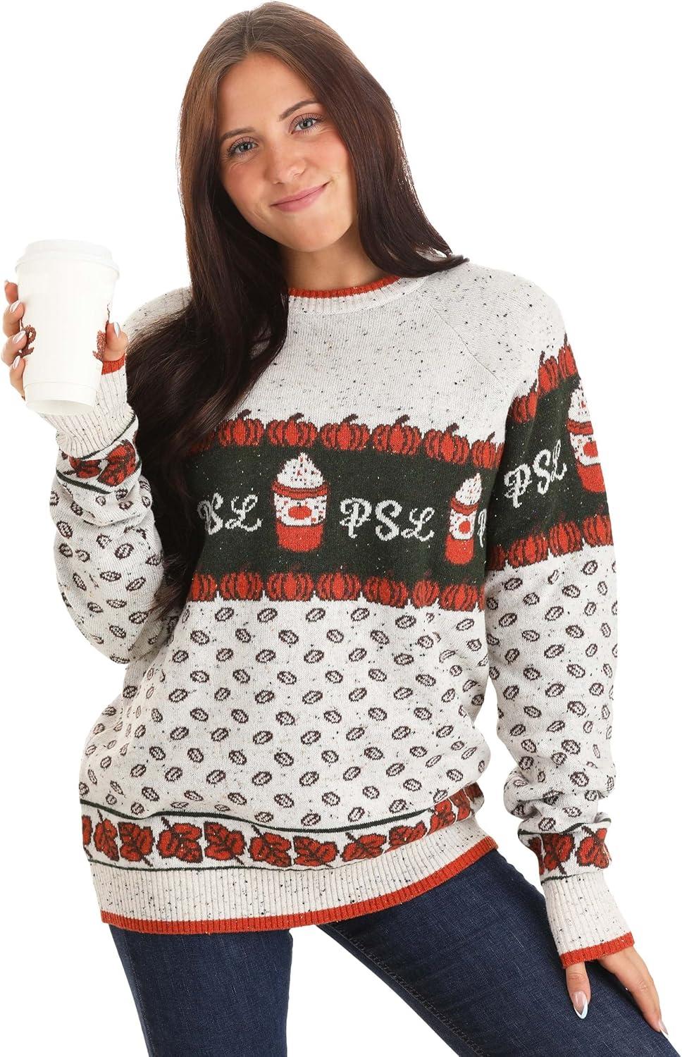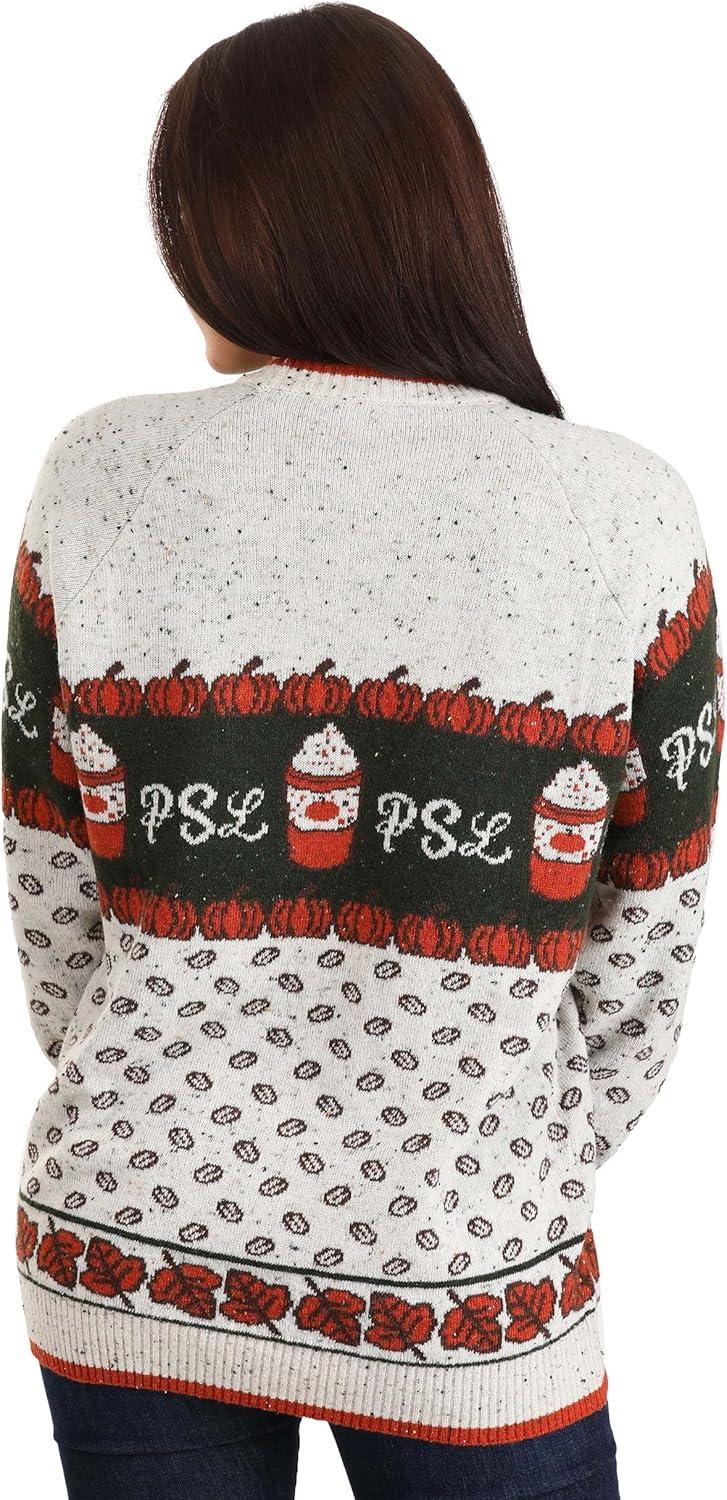 Pumpkin Spice Latte Sweater – Featuring Coffee Beans, Pumpkins, and Delicious PSL – Rib-Knit Details.(Multi-colored)